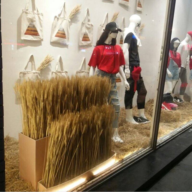Высушенная сцену цветов в выставочном зале торгового центра, рис, сухой пшеница, уши пшеницы, отделка для отделки