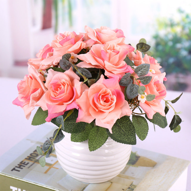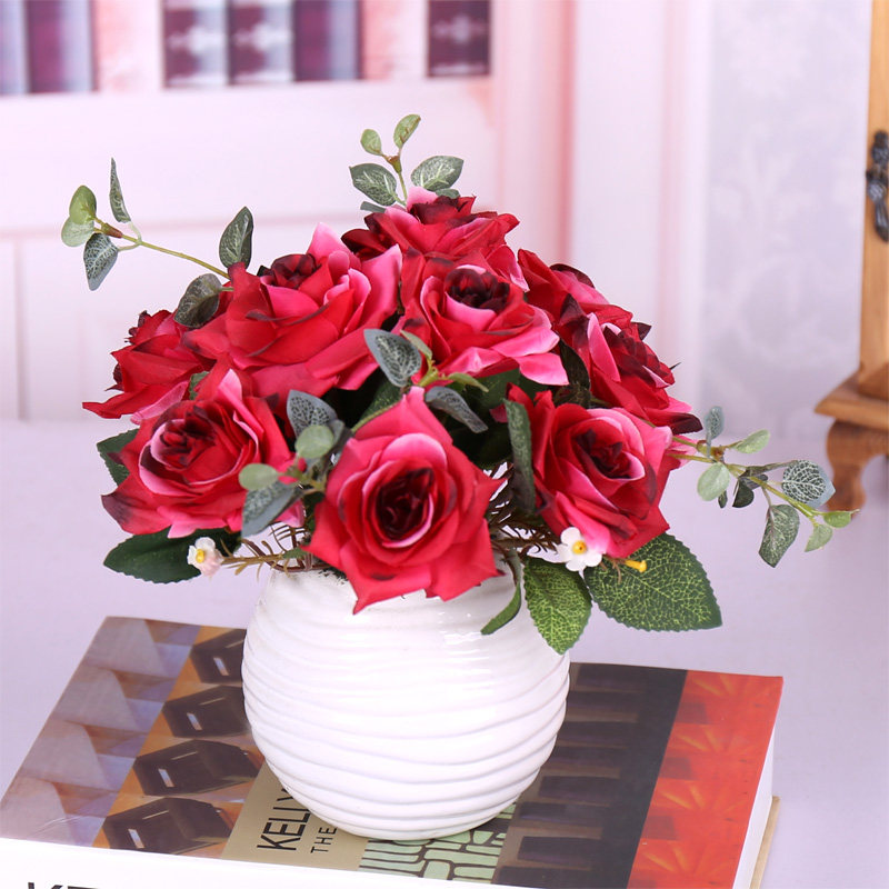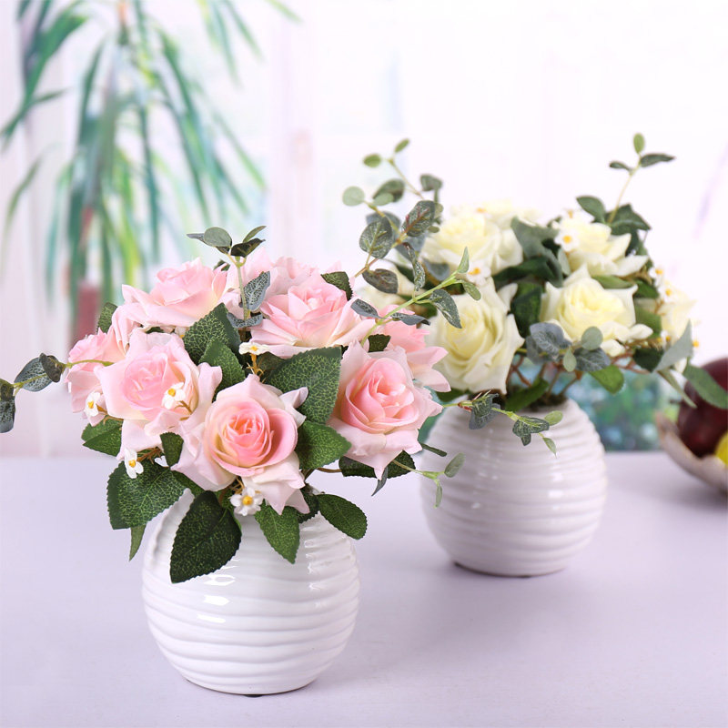 Небольшие горшечные растения с поддельными цветами, высокие имийные цветы, фальшивые цветы, декоративные цветы, розы, звездные украшения для кофейного столика, цветочный набор