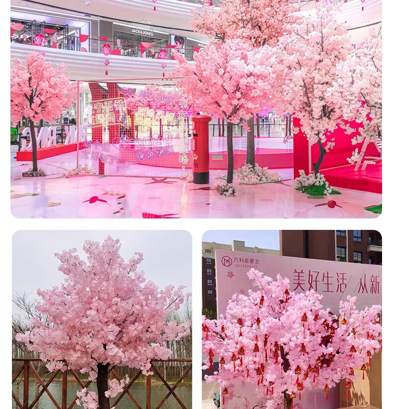 Имитация вишневого дерева, персикового дерева, дерева желаний, внутреннего и наружного украшения, большого искусственного дерева, дерева желаний торгового центра, искусственного цветка для ландшафтного дизайна.