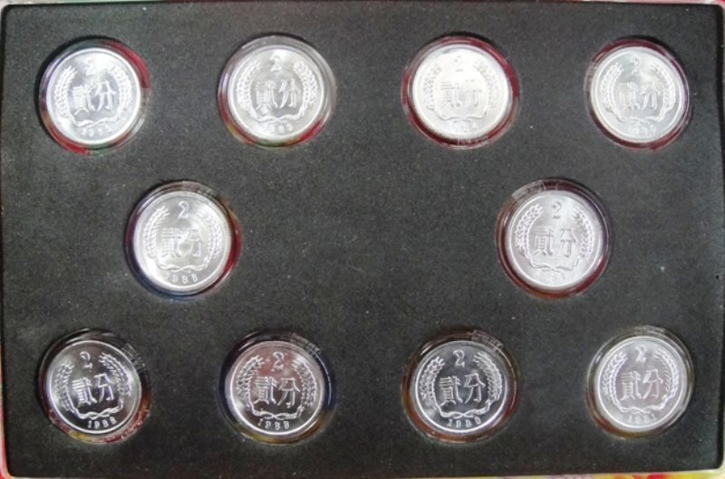 Китайская жесткая монета 82-91 Двухточечные монеты (десять полных десять красоты) прозрачные коробки сбора хрусталей без валюты