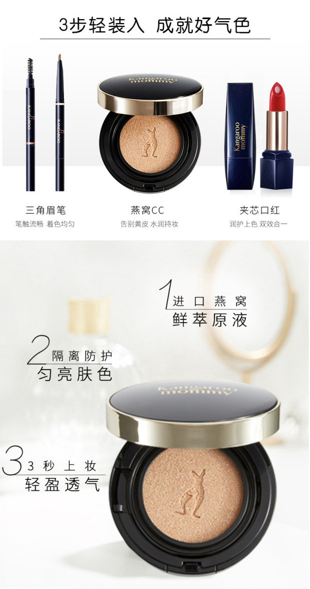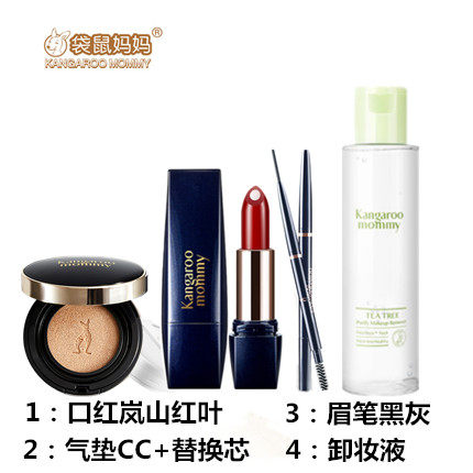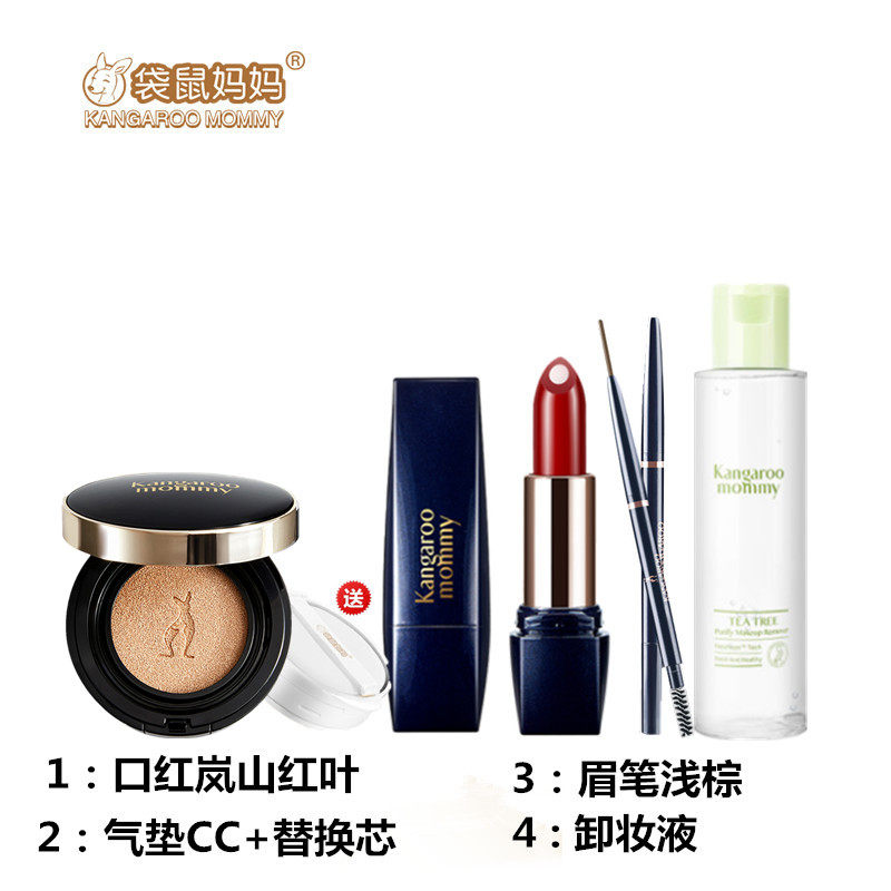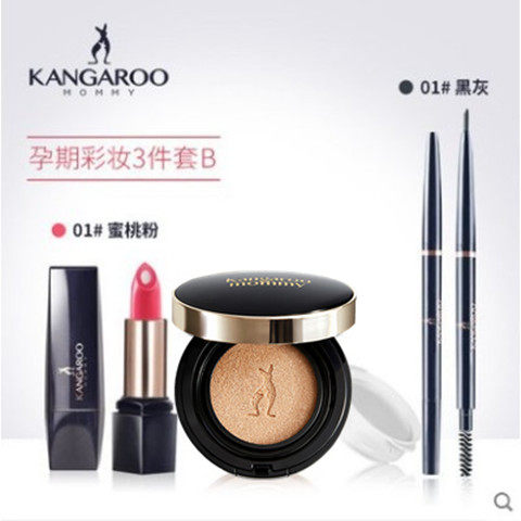 «Кенгуру», база под макияж для матери, комплект, косметика для кормящих грудью, кушон, помада, карандаш для бровей, 4 шт