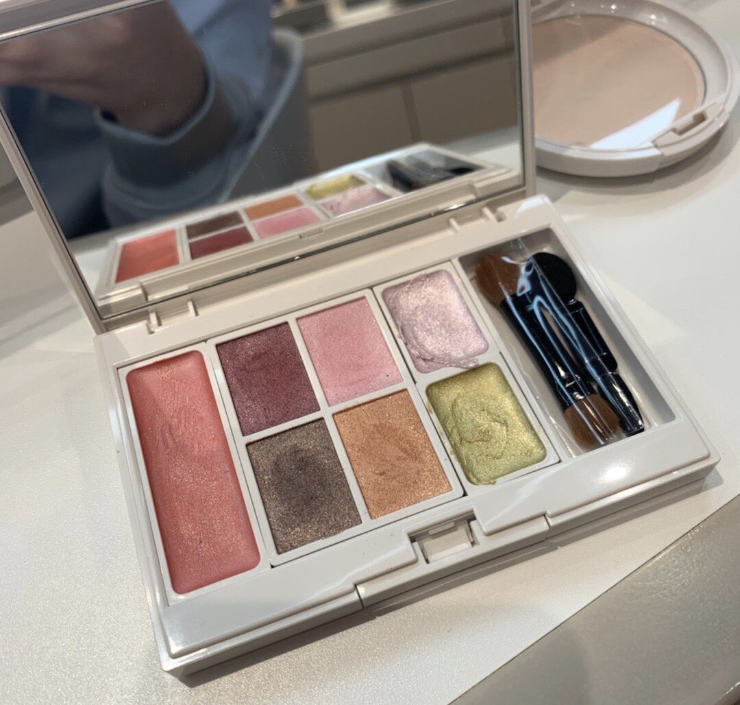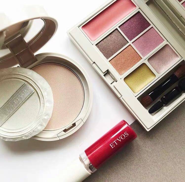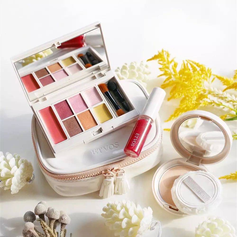 Японская база под макияж, комплект, тени для век, блеск для губ, пудра, косметичка, (в наличии на складе), 2020