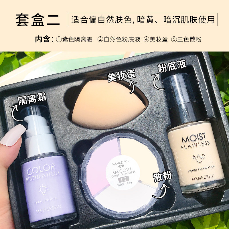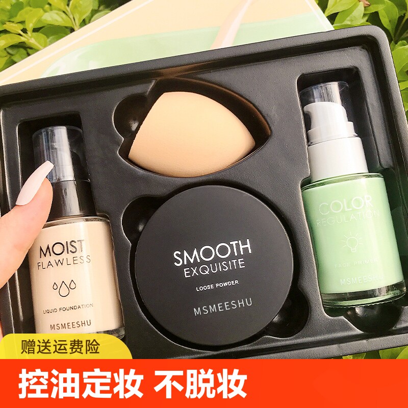 База под макияж, комплект, тональный крем, спонж, рассыпчатая пудра, контроль жирного блеска