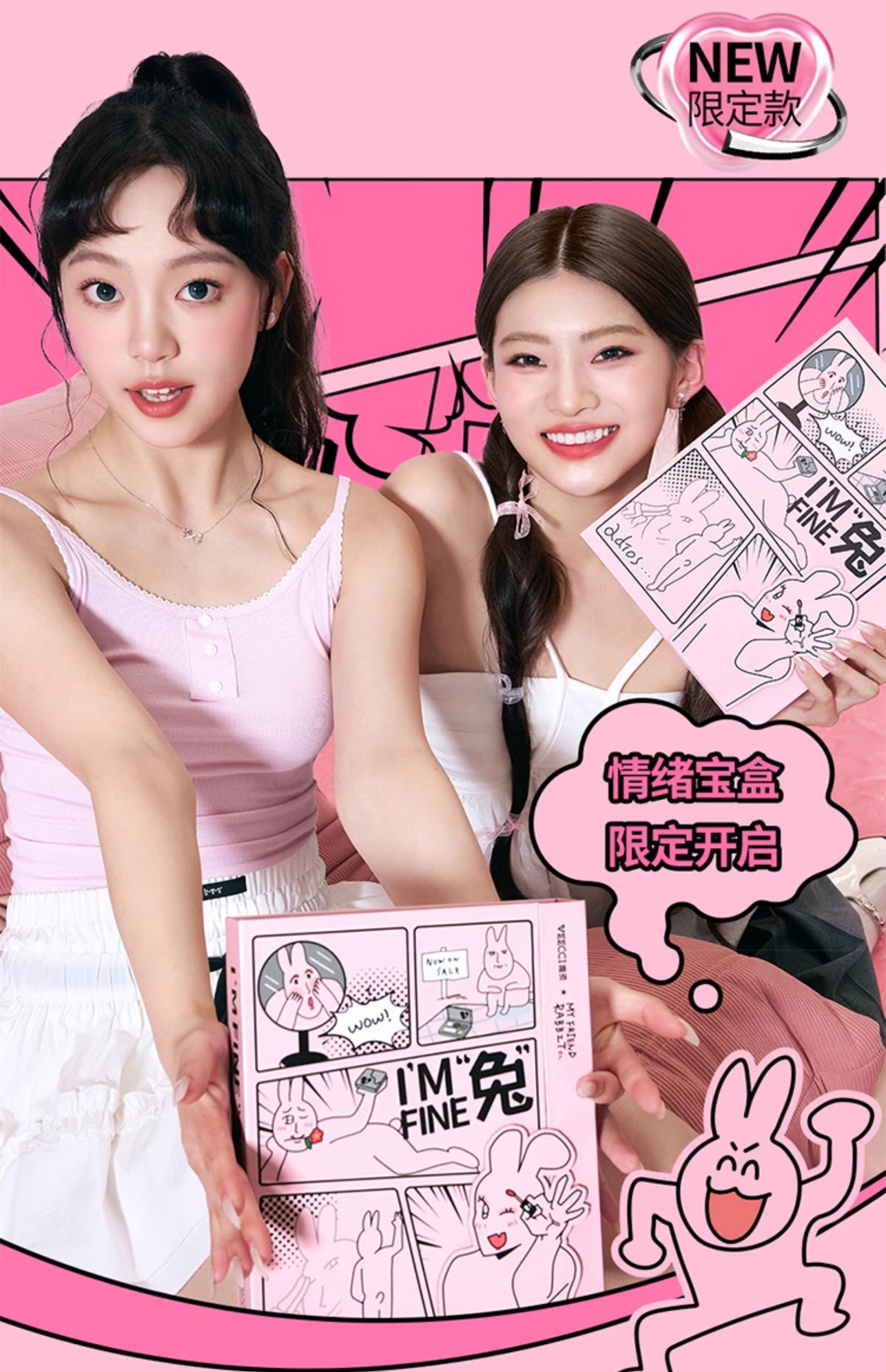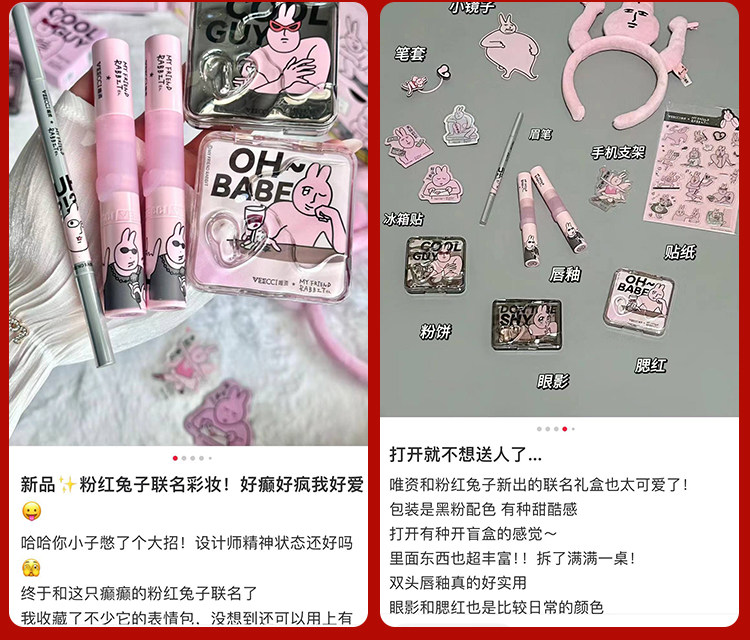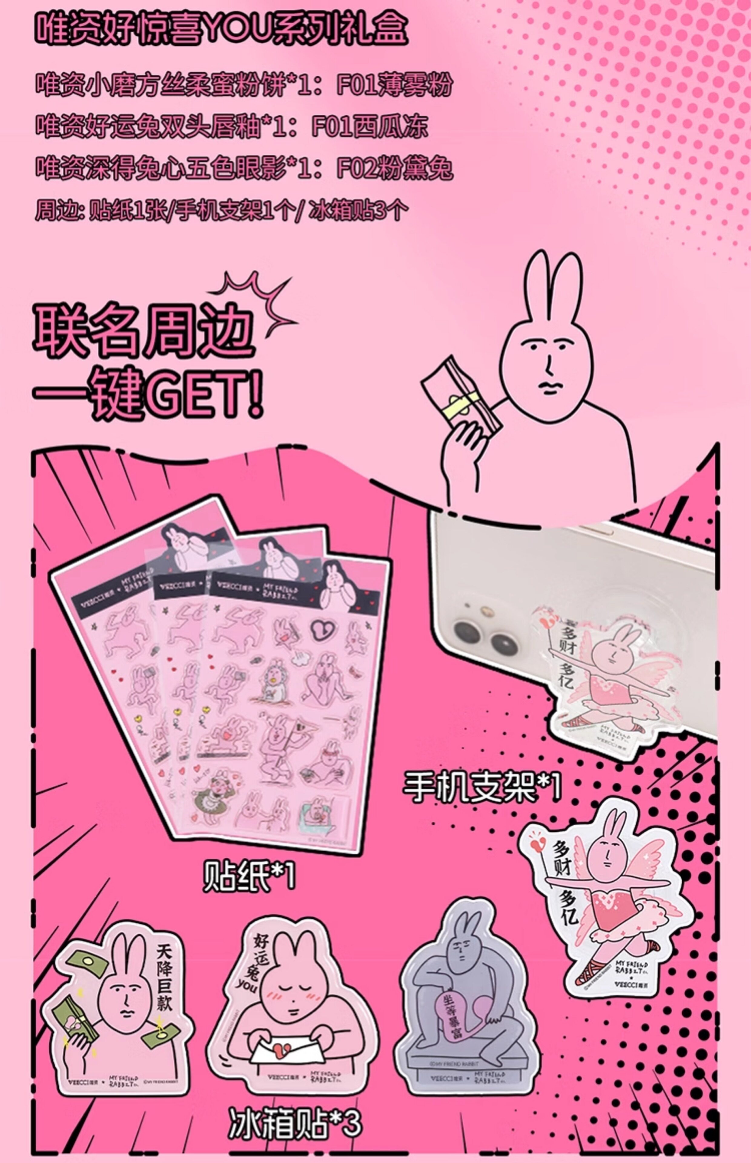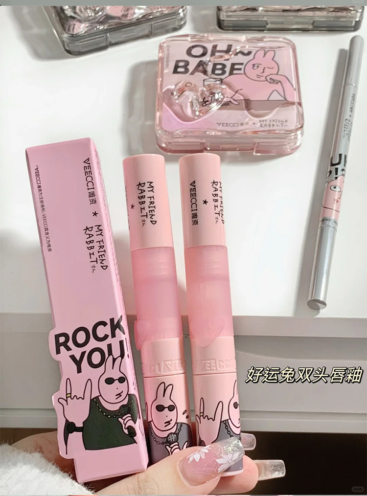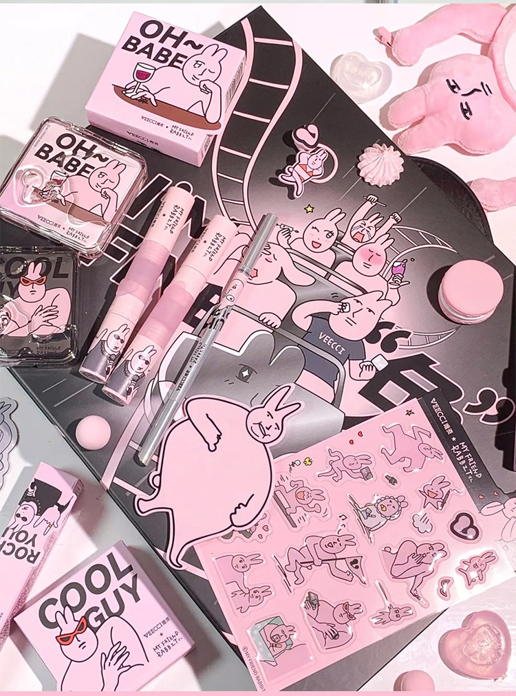 Veecci Pink Rabbit Co-Bending Gired Box Глазу для губ палитра тени матовой жемчужина