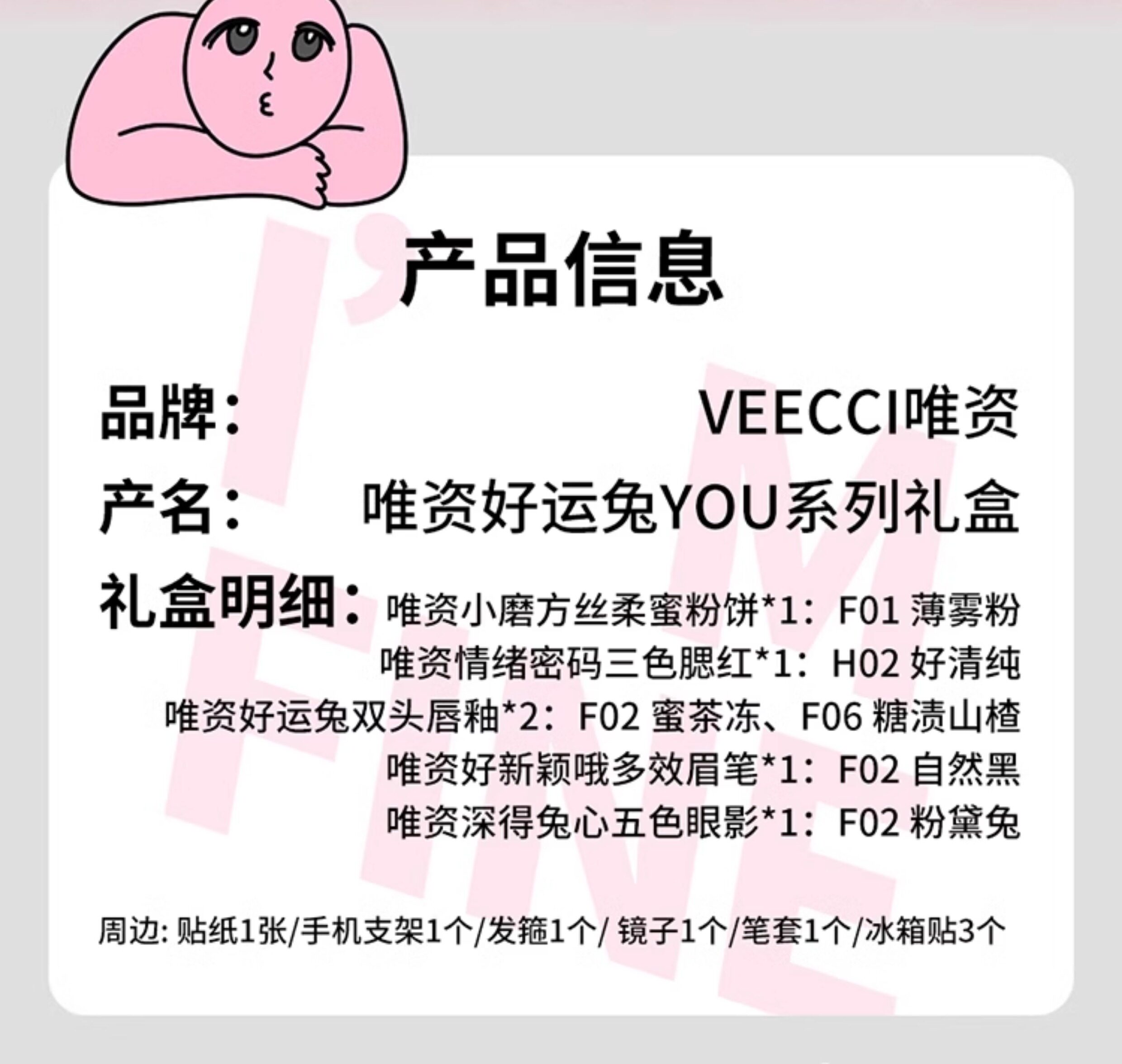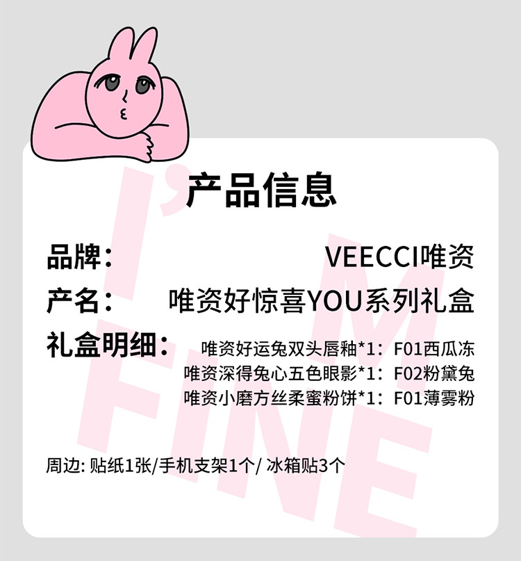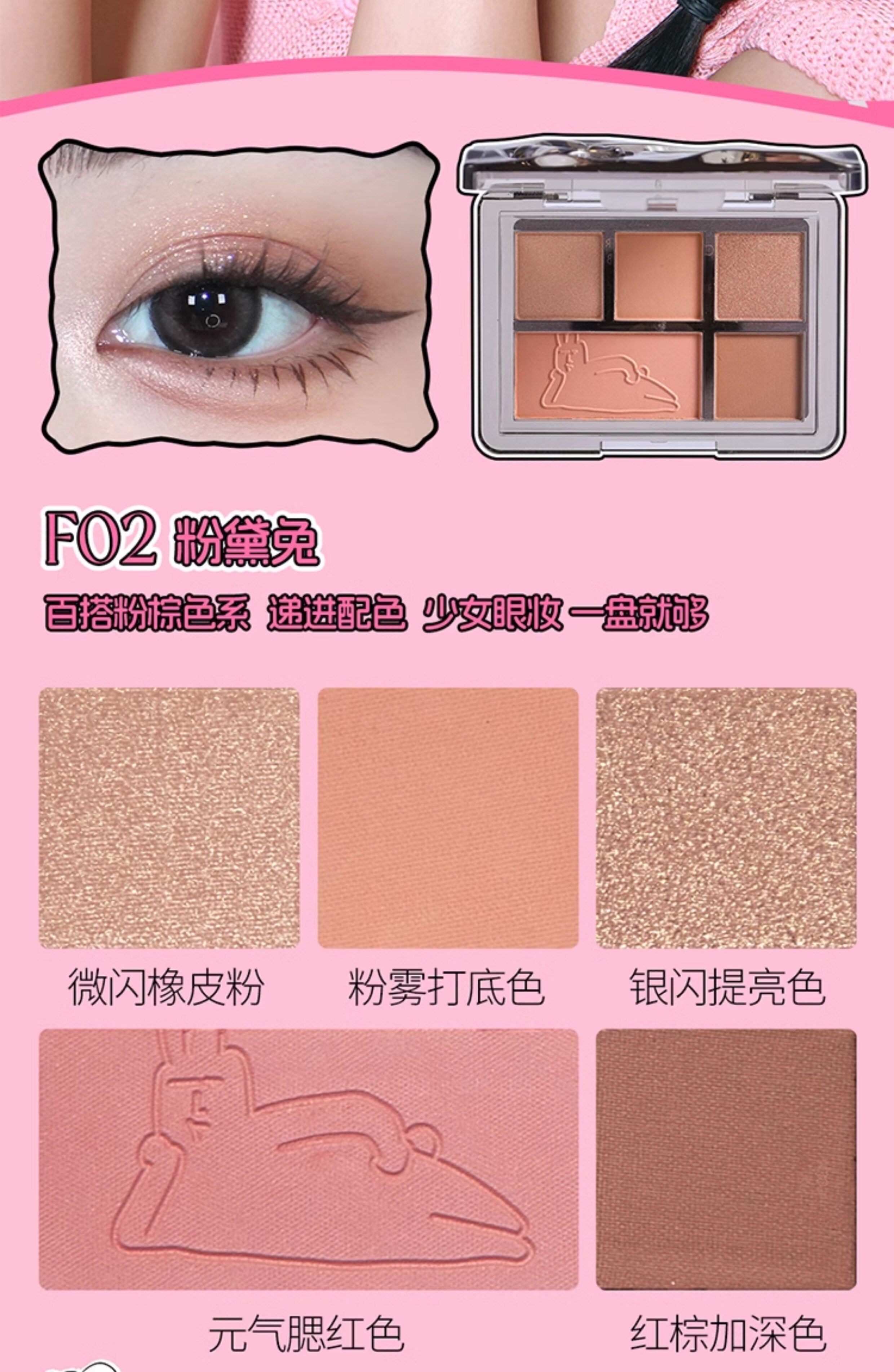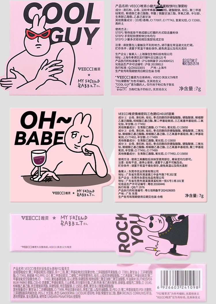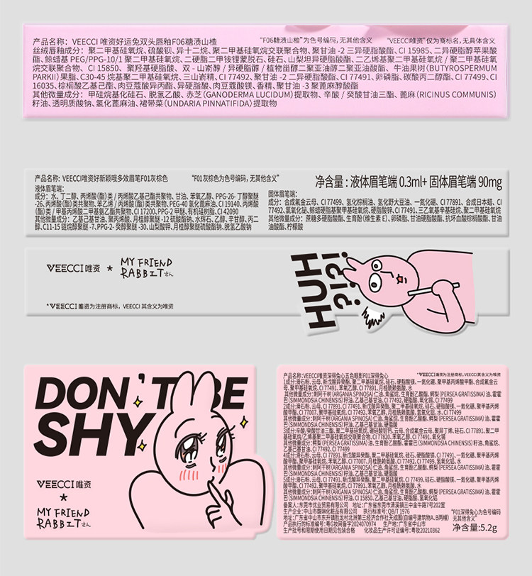 Veecci Pink Rabbit Co-Bending Gired Box Глазу для губ палитра тени матовой жемчужина