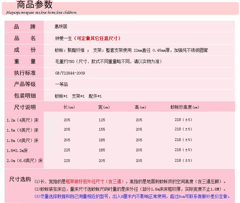 惠妍居 Москитная сетка из нержавеющей стали с молнией для принцессы, 1.8м