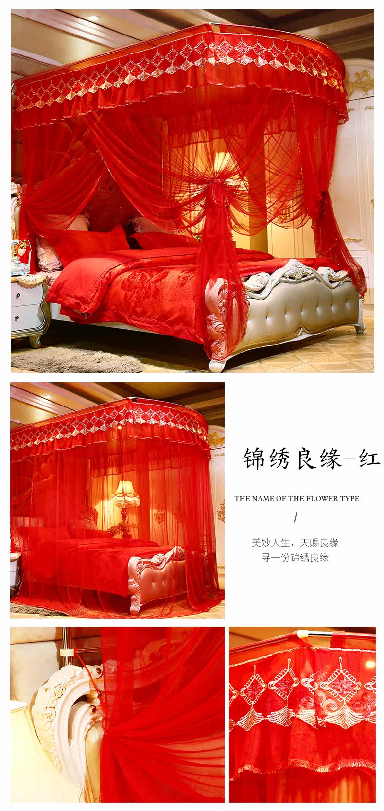 U -shaped Три -открытая дверь Большая красная свадебная рыбацкая рыбалка телескопические колодки комары сеть 1,8 м 2,0 м Home Wedding Feartive
