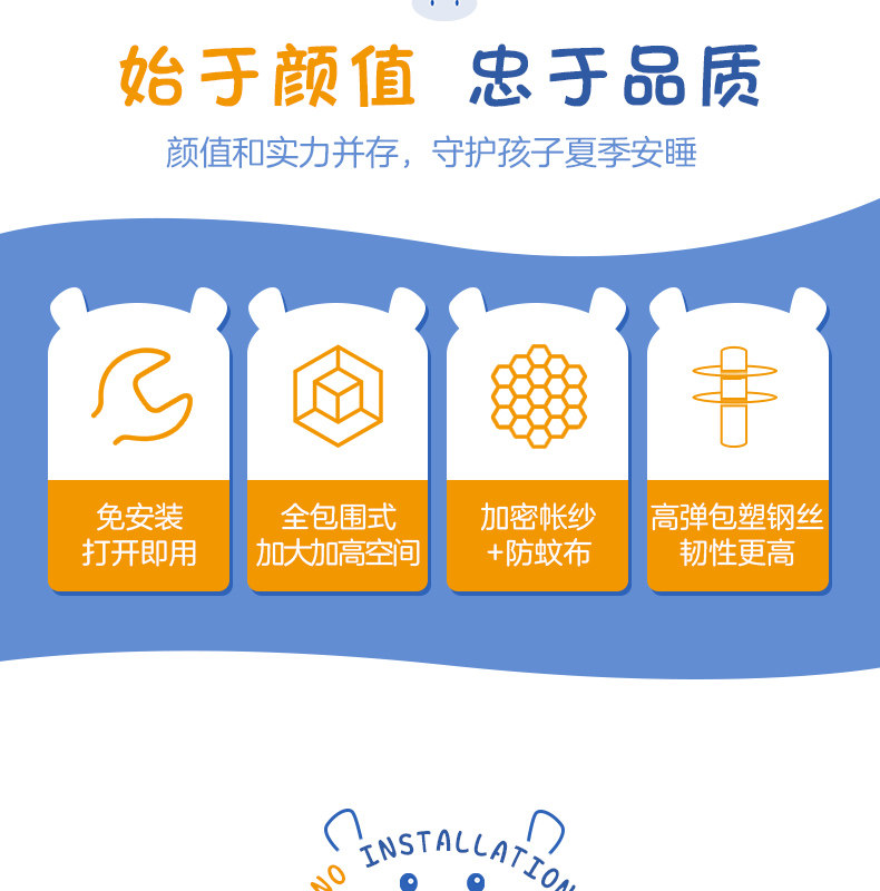 博洋 Детская складная москитная сетка для домашнего использования с молнией, защита при падении