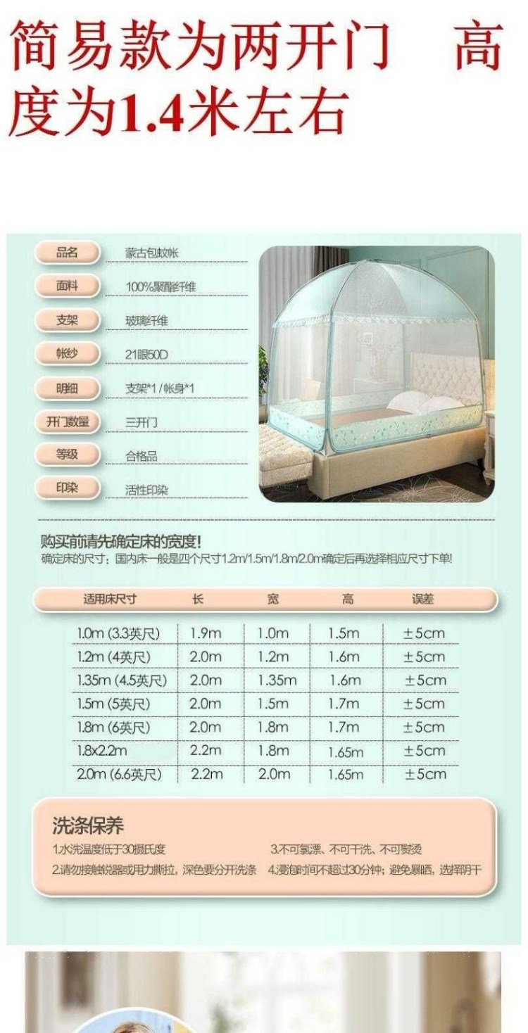 Установите 1 двойной 2-метровой без кровати Yurt, 8M Mosquito Net Simple, 1, 51 раз