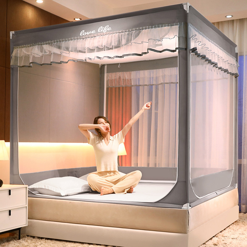 Москитная сетка для домашней спальни, юрты на улице, с шестом, для кровати, с улучшенной защитой от падения, для детей, U-образное шифрование, утолщенное, трехдверное.
