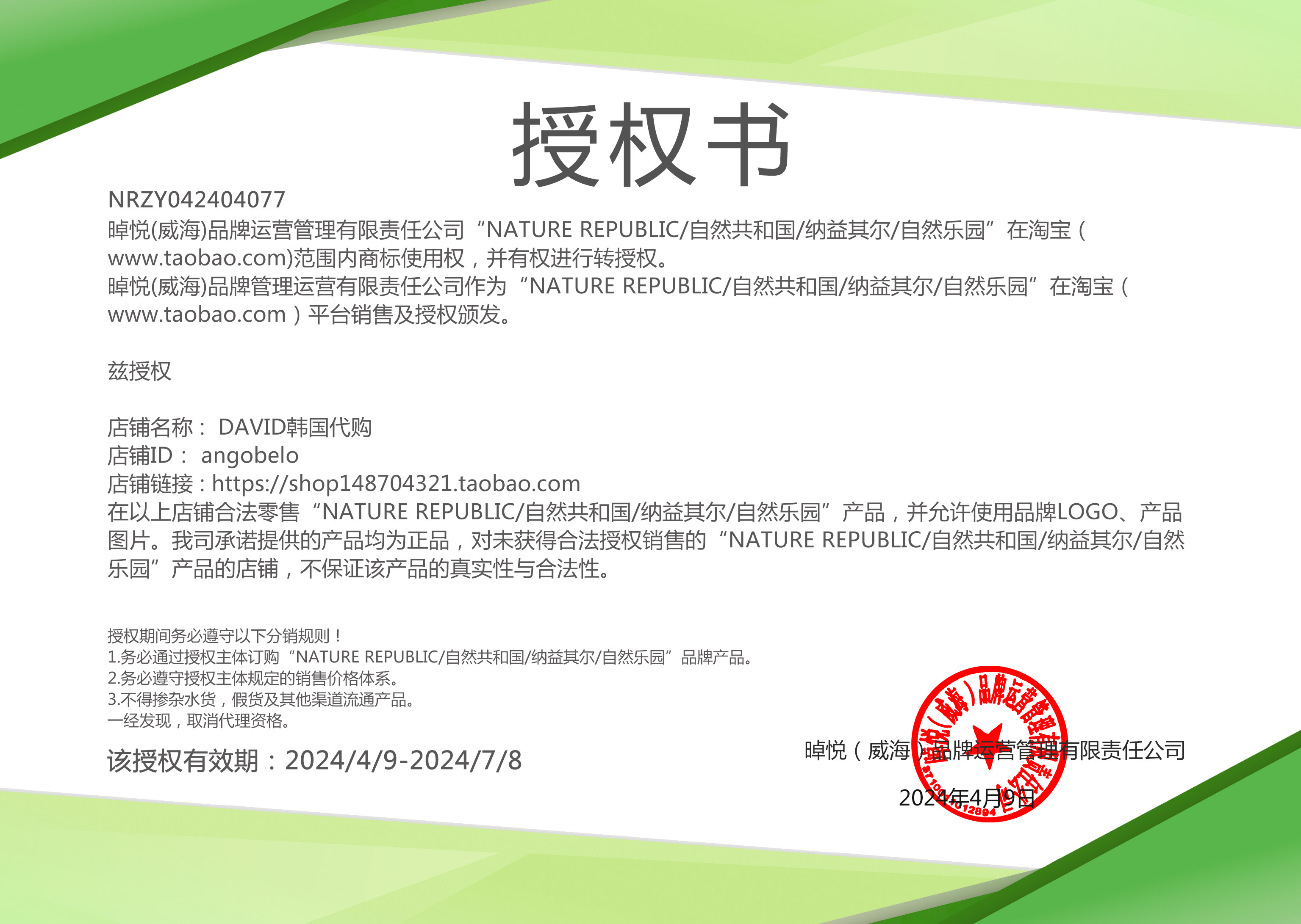 Продавец:DAVID韩国代购