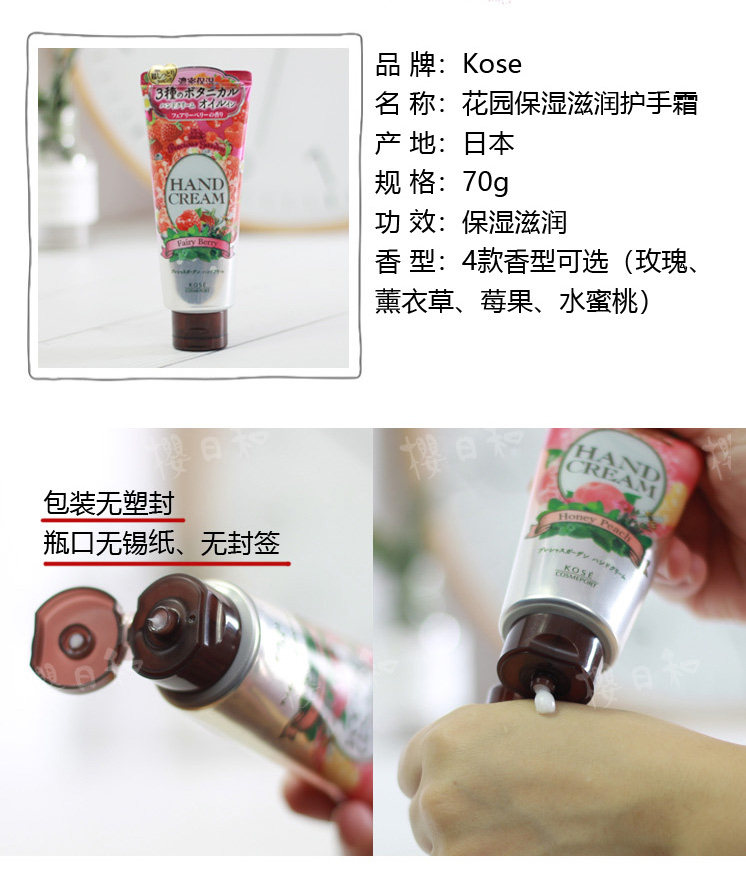 Kose, японский увлажняющий крем для рук с розой в составе, 70г