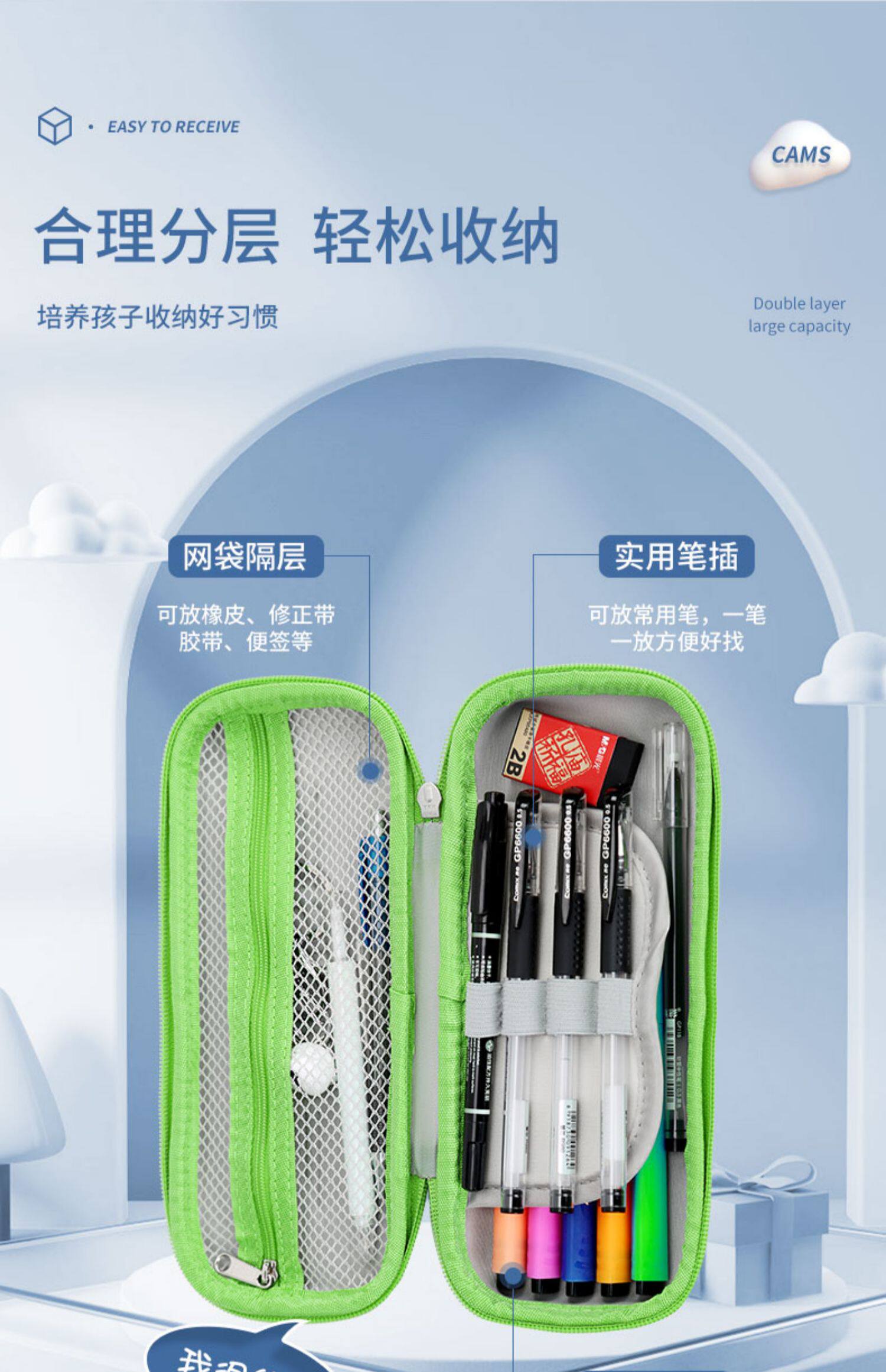 CAMS Eva, универсальный пенал для школьников, вместительные и большые канцтовары, 1-6 года