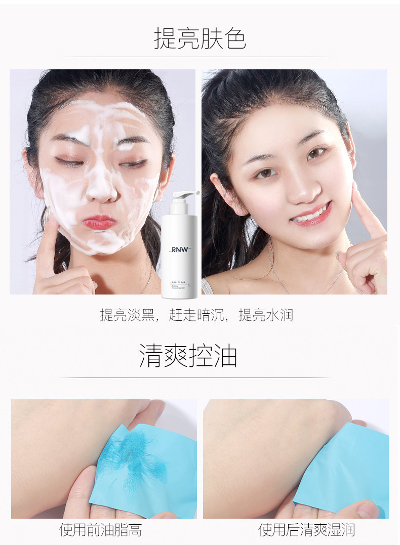 RNW Осветляющее увлажняющее очищающее молочко на основе аминокислот от черных точек для ухода за кожей, контроль жирного блеска, анти-акне