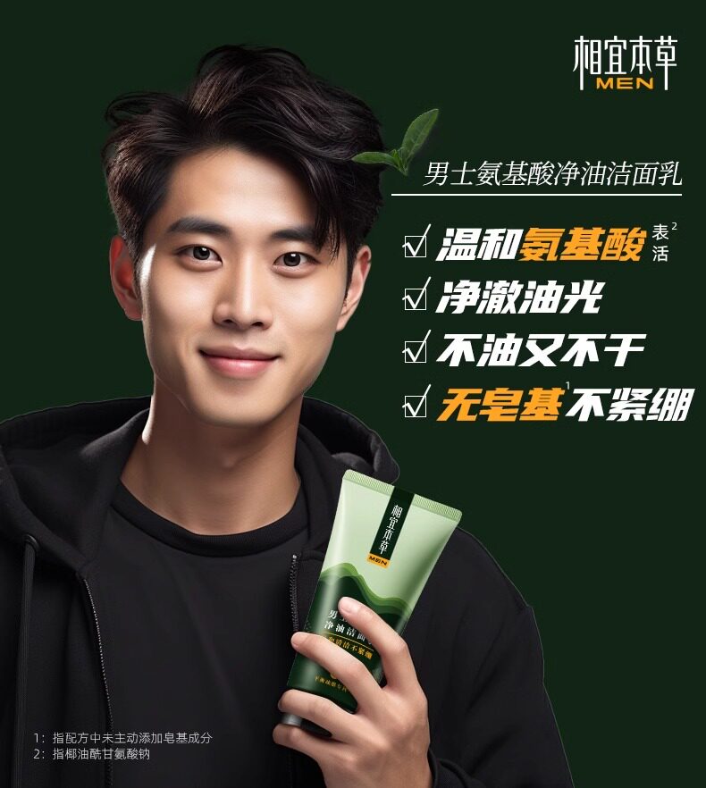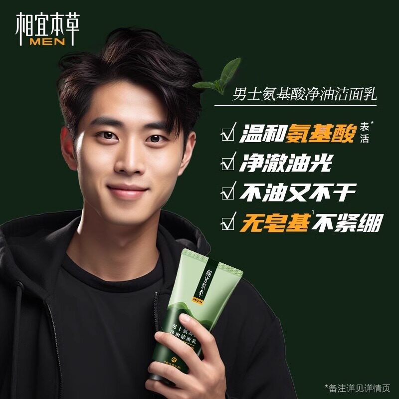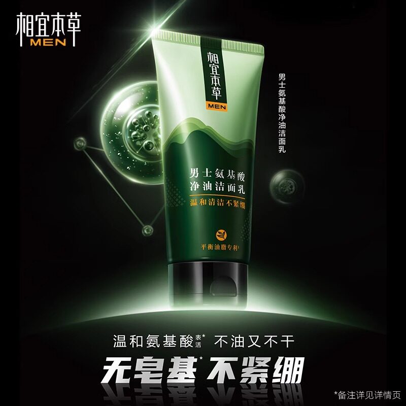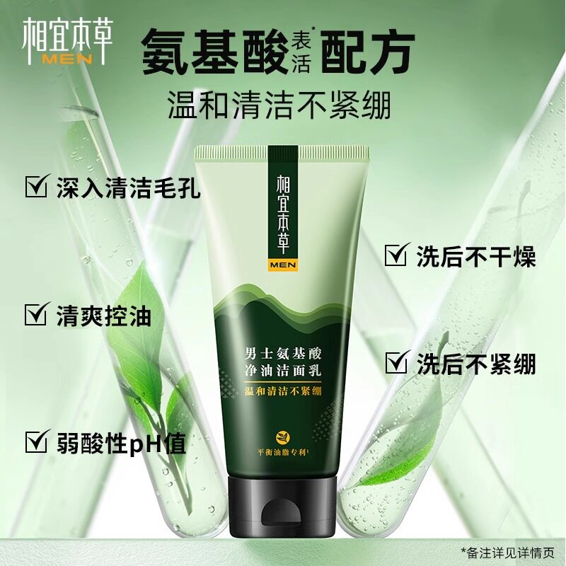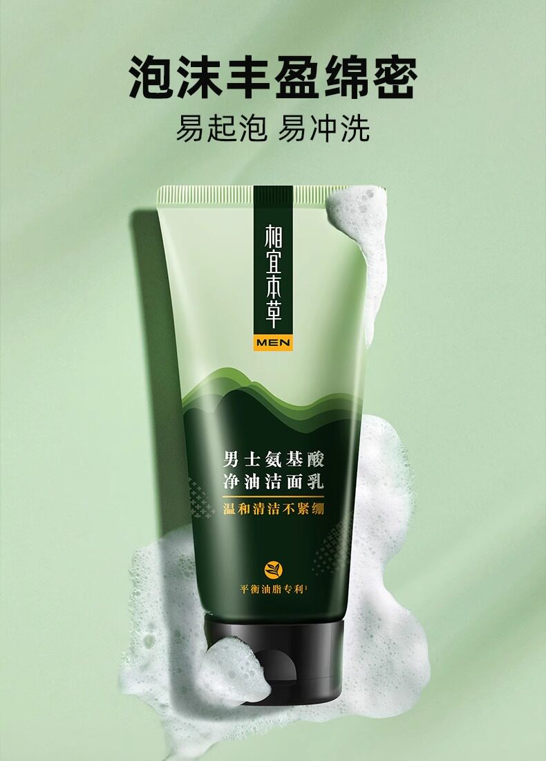相宜本草 Мужское освежающее очищающее молочко на основе аминокислот, контроль жирного блеска, официальный продукт