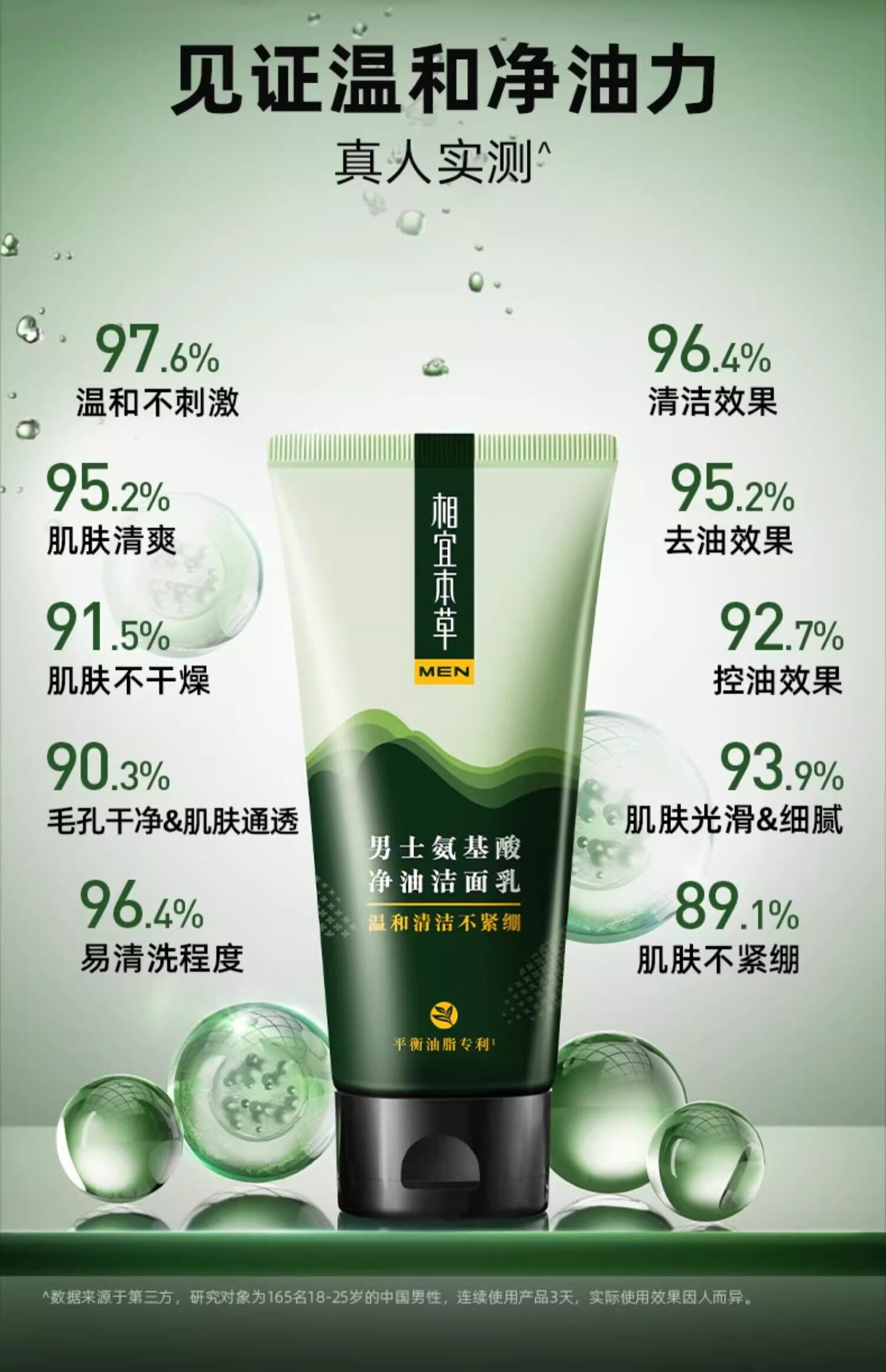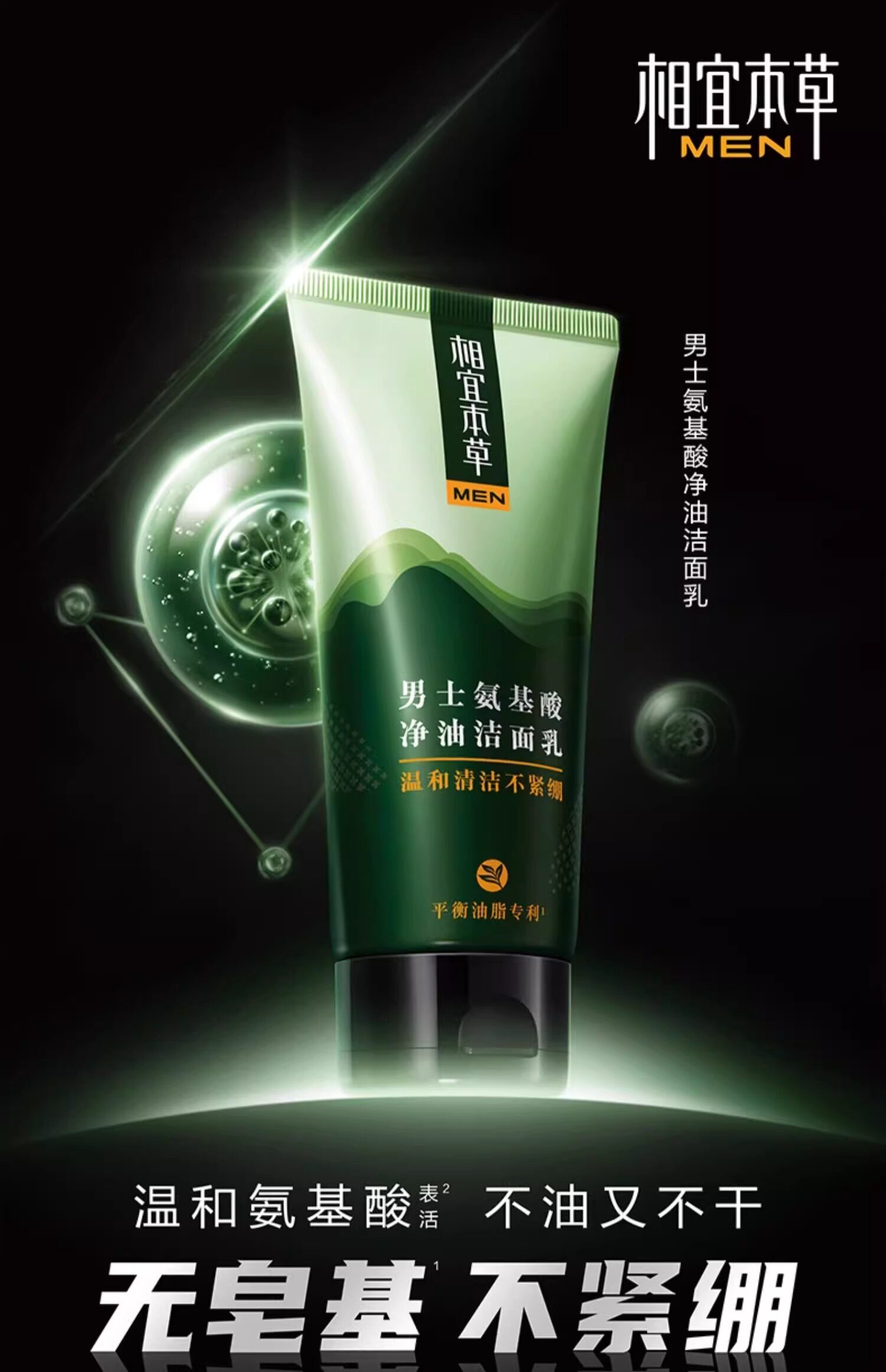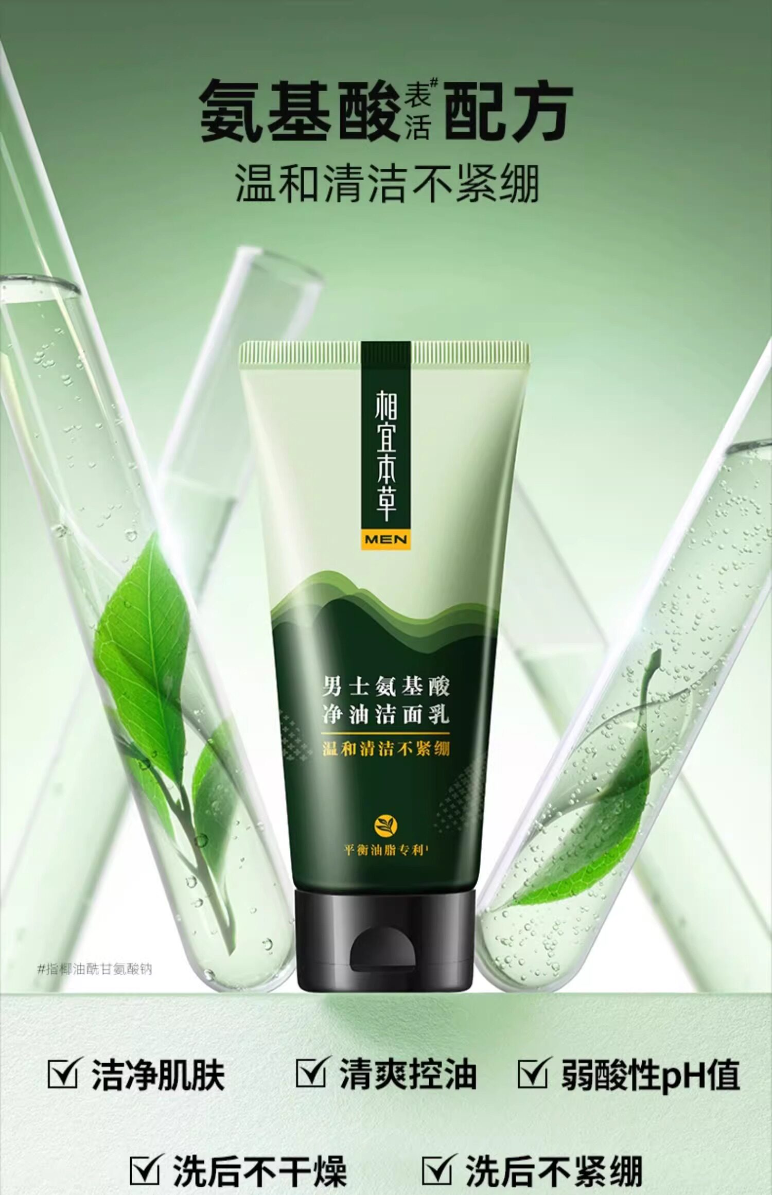 相宜本草 Мужское освежающее очищающее молочко на основе аминокислот, контроль жирного блеска, официальный продукт