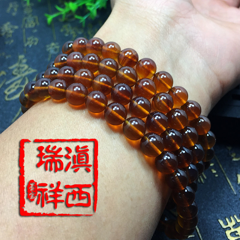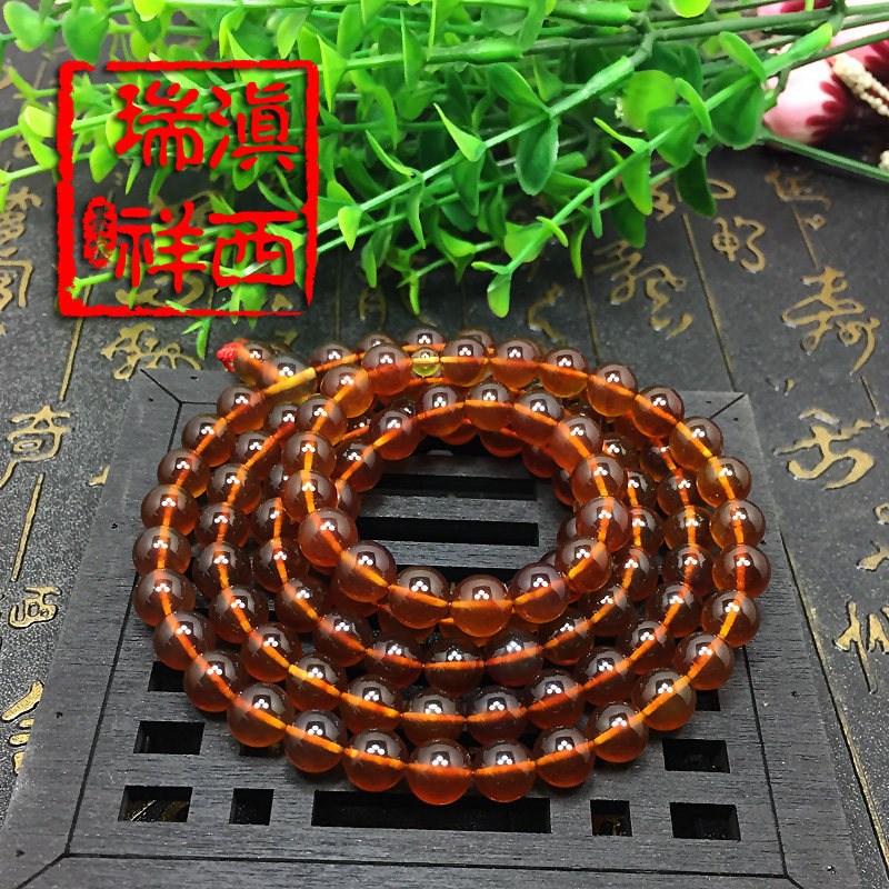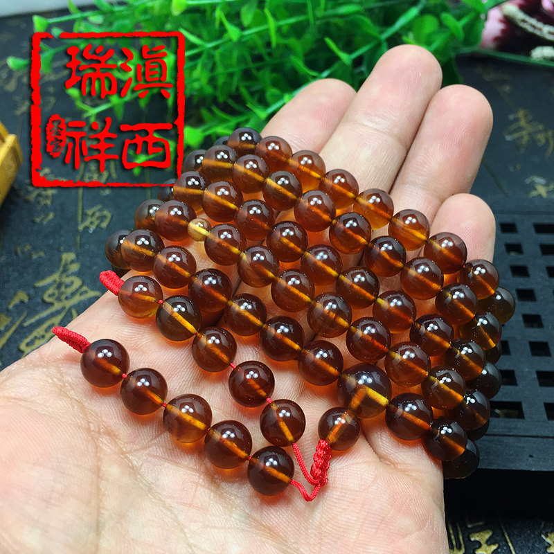 滇西瑞祥 Натуральная природная руда, янтарная реплика из Мьянмы, бусины, четки из воскового агата, 108 бусин