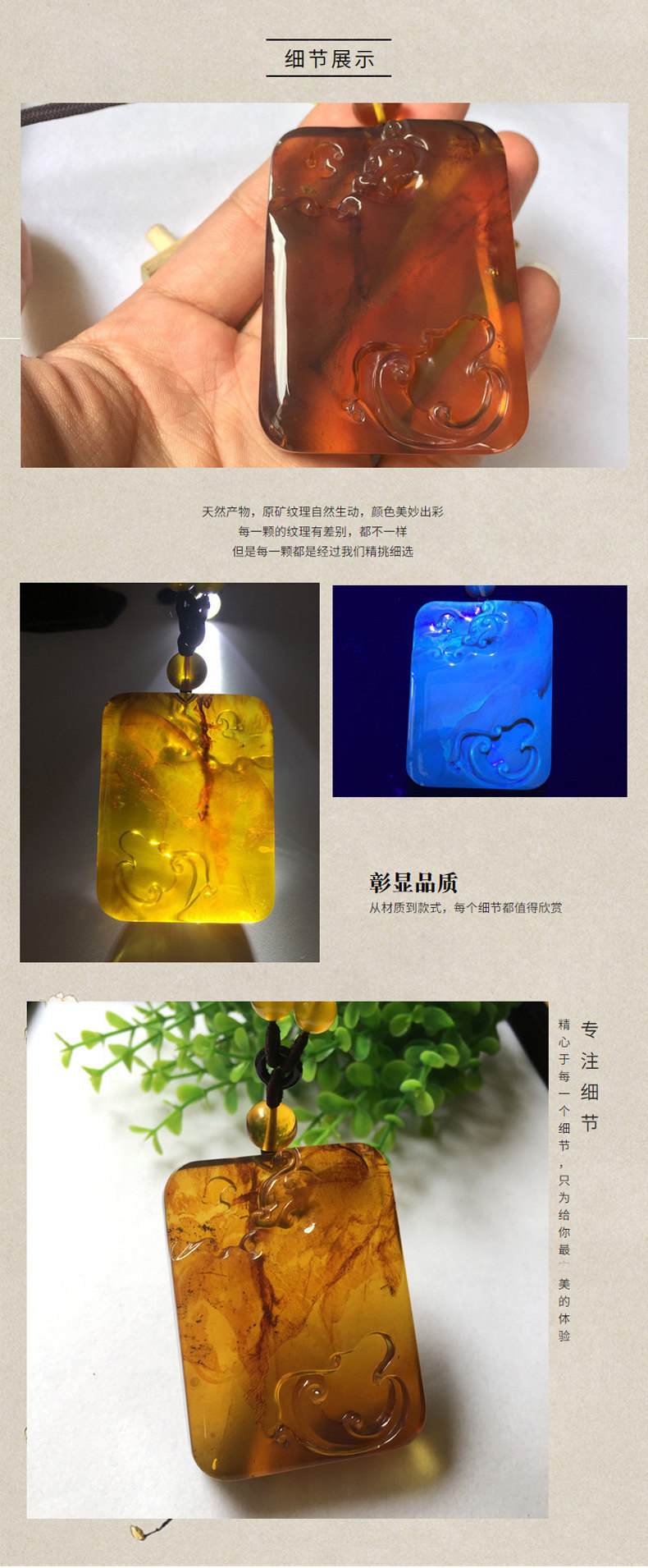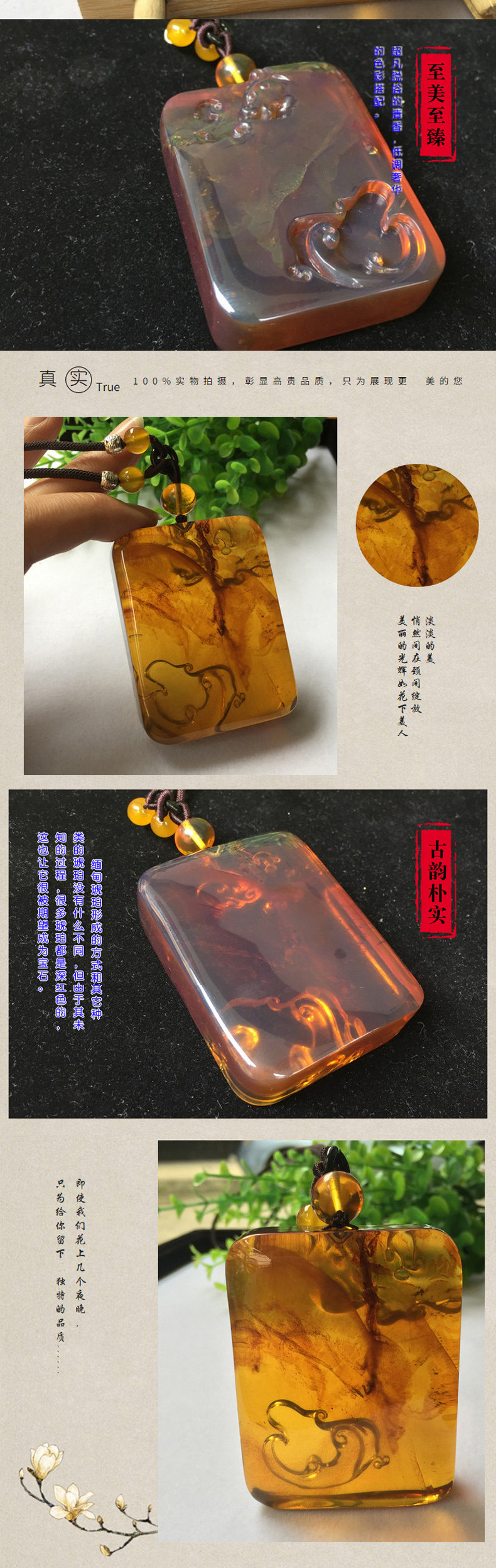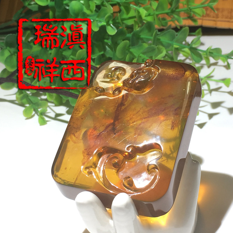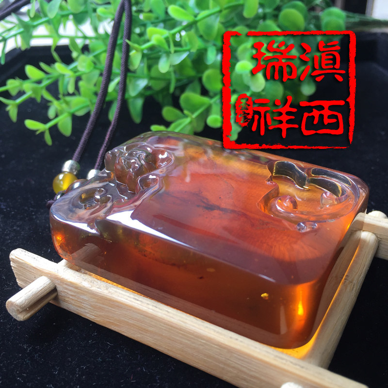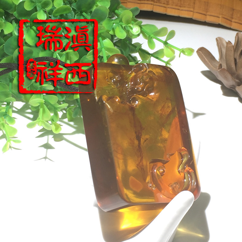滇西瑞祥 Натуральная янтарная реплика из Мьянмы, подвеска, дракон и феникс