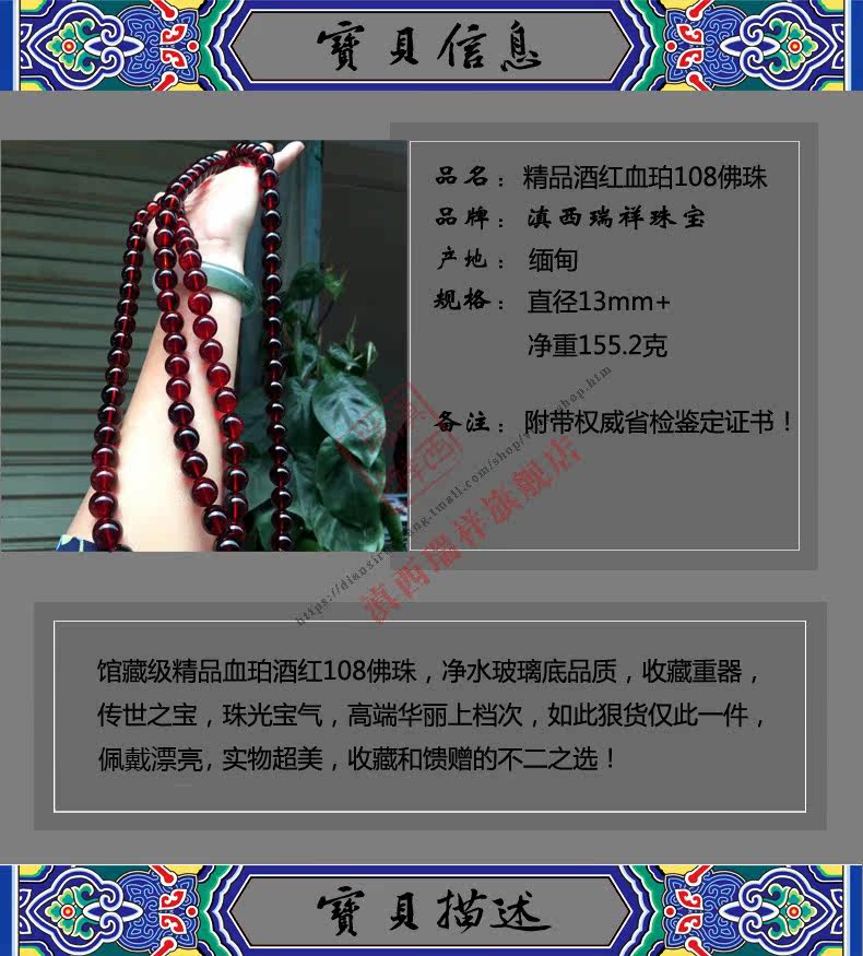 滇西瑞祥 Натуральная природная руда, янтарная реплика из Мьянмы, четки из воскового агата, 108 бусин