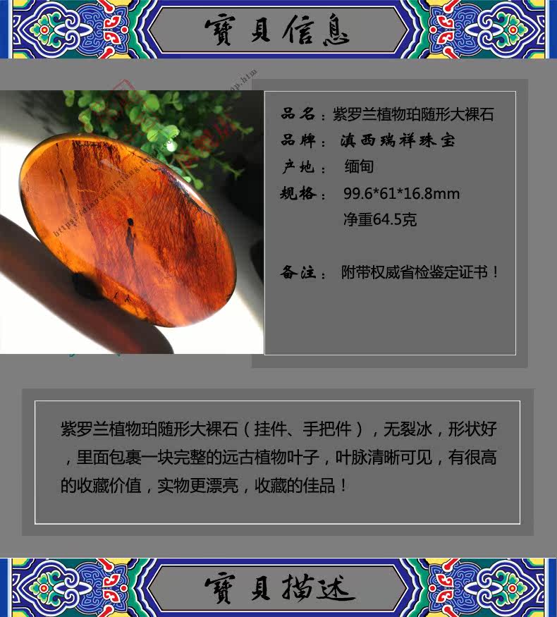 滇西瑞祥 Натуральная янтарная реплика из Мьянмы, драгоценный камень, ручка, украшение в руку