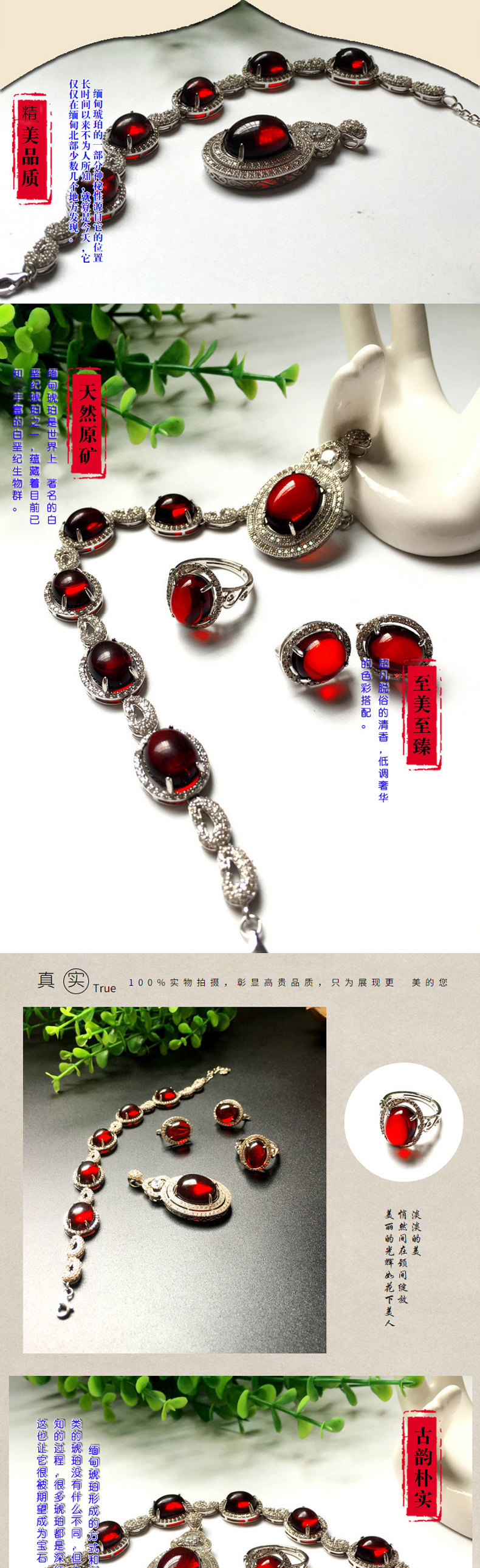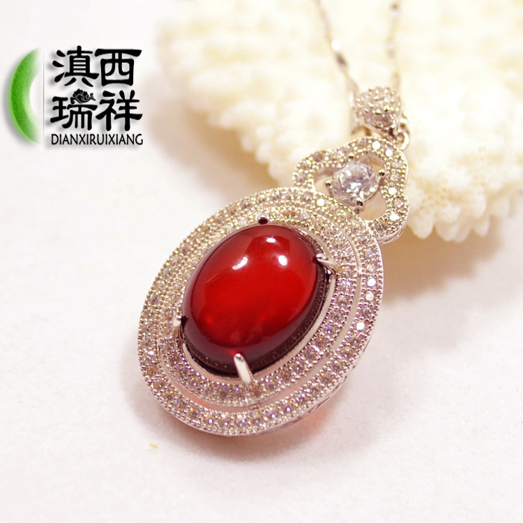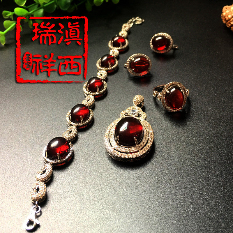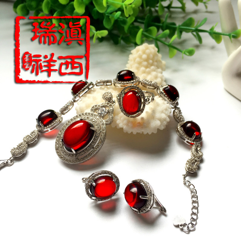 滇西瑞祥 Натуральная янтарная реплика из Мьянмы, инкрустация камня, комплект, подвеска, ожерелье, серебро 925 пробы, 4 шт