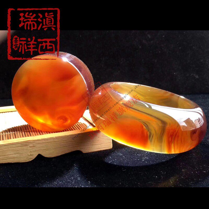 滇西瑞祥 Натуральная янтарная реплика из Мьянмы, румяна, женский браслет, 62mm