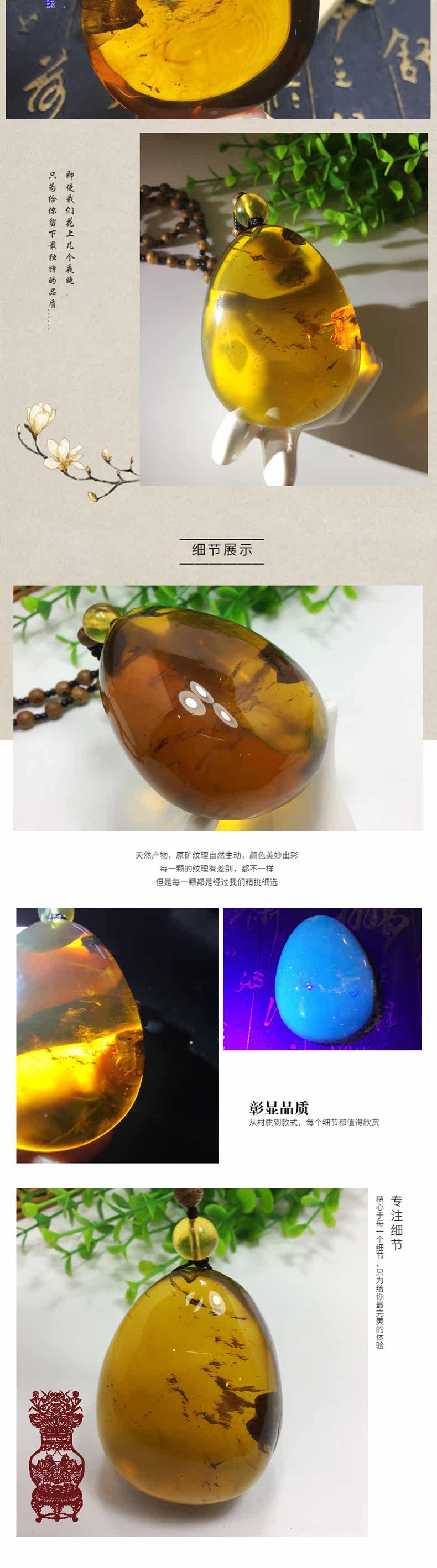 滇西瑞祥 Натуральная янтарная реплика из Мьянмы, подвеска, ожерелье