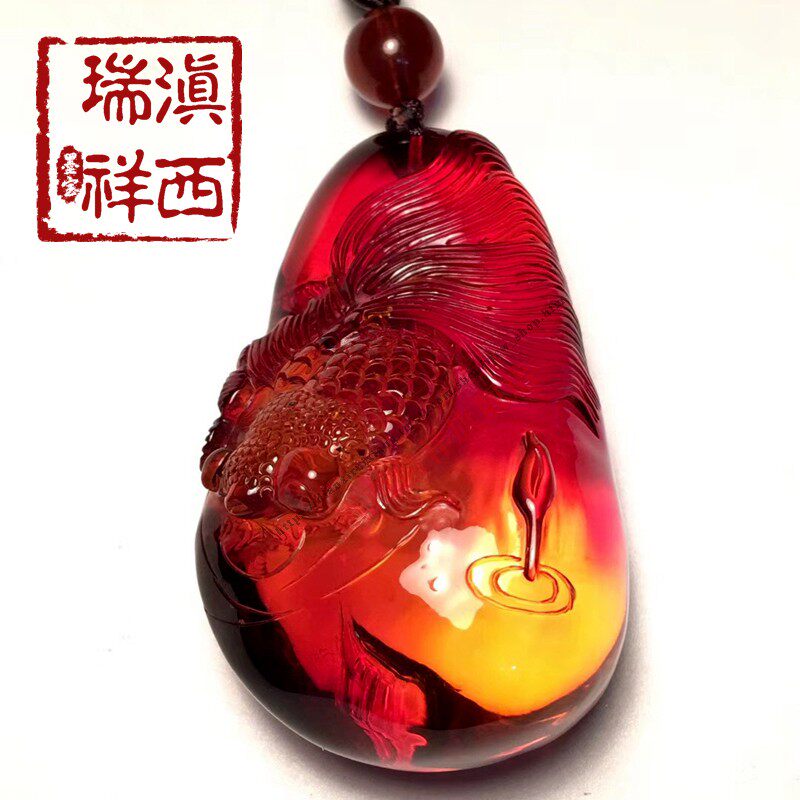 滇西瑞祥 Натуральная янтарная реплика из Мьянмы, резьба по камню, подвеска, ожерелье из воскового агата