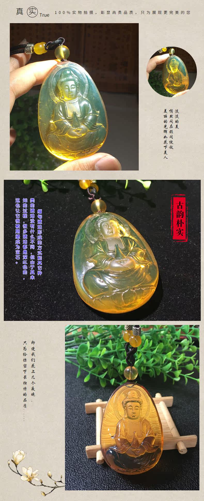 滇西瑞祥 Натуральная янтарная реплика из Мьянмы, янтарный чай Тегуаньинь, подвеска