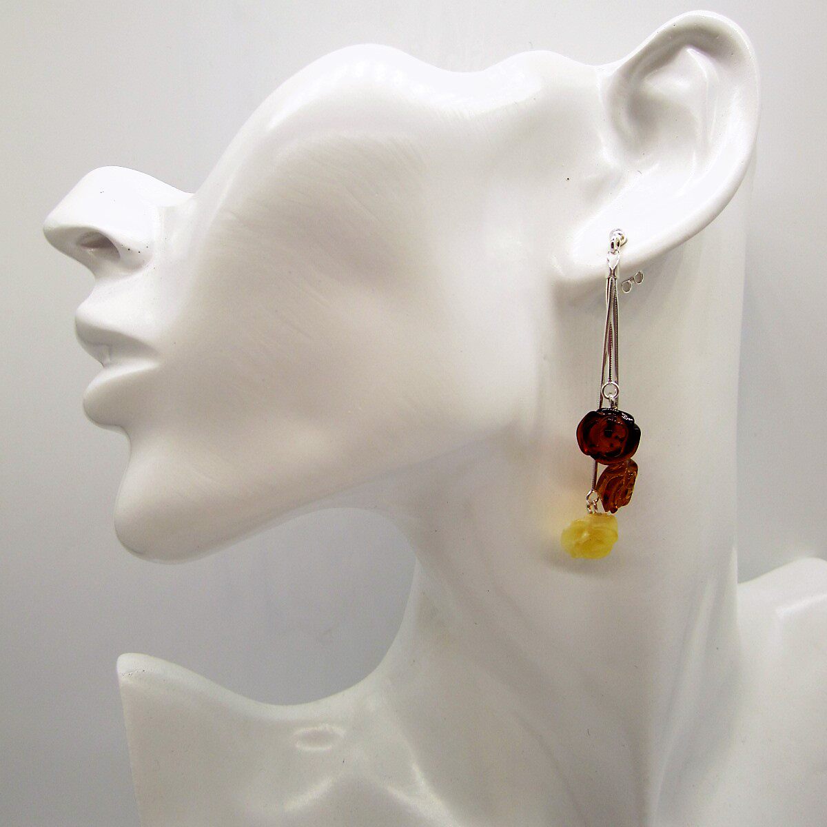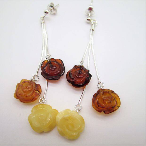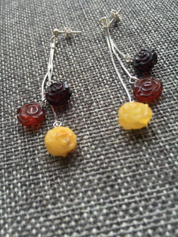 Янтарные серьги из воскового агата, серебро 925 пробы