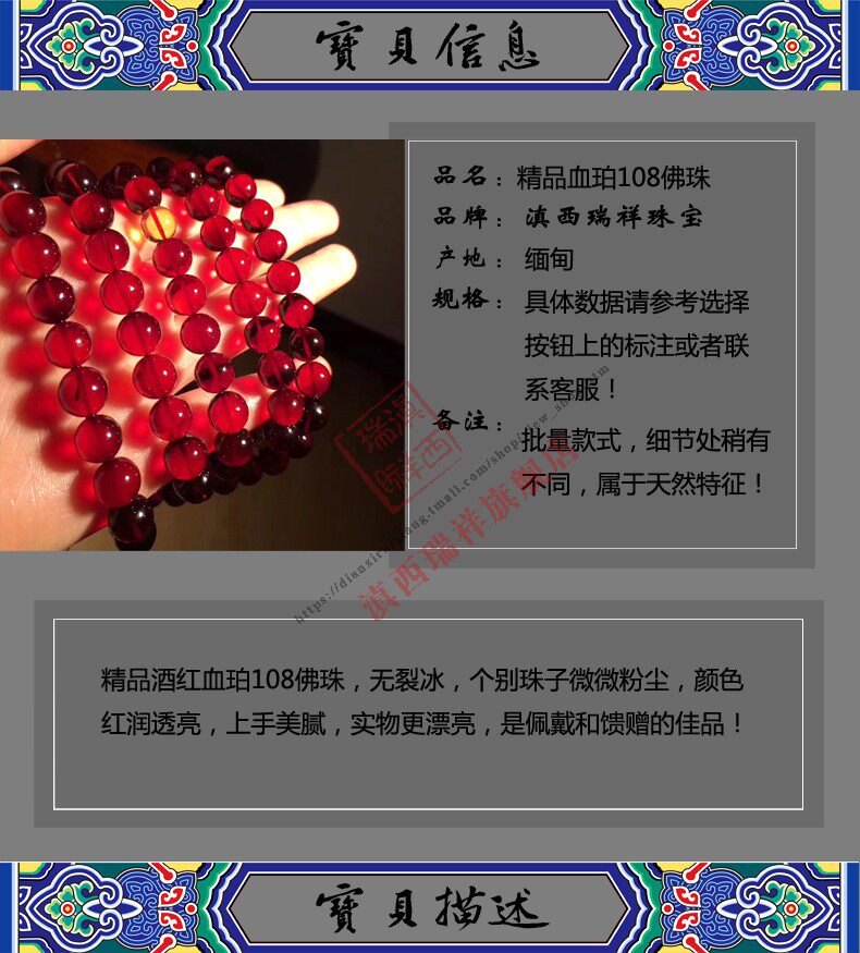 滇西瑞祥 Натуральная природная руда, янтарная реплика из Мьянмы, бусины, четки из воскового агата, 108 бусин