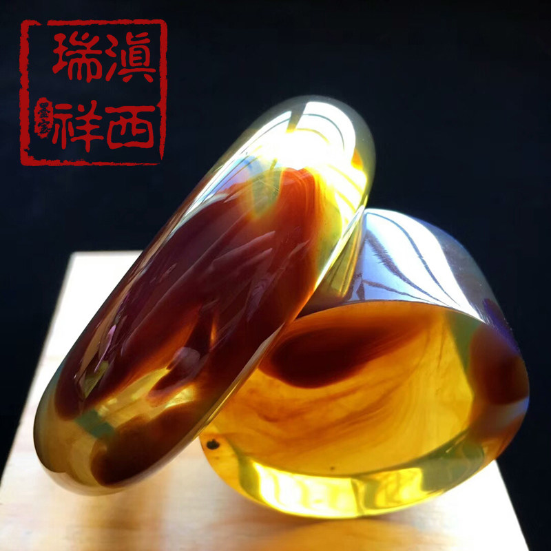 滇西瑞祥 Натуральная янтарная реплика из Мьянмы, двухцветные румяна, женский браслет, 58mm