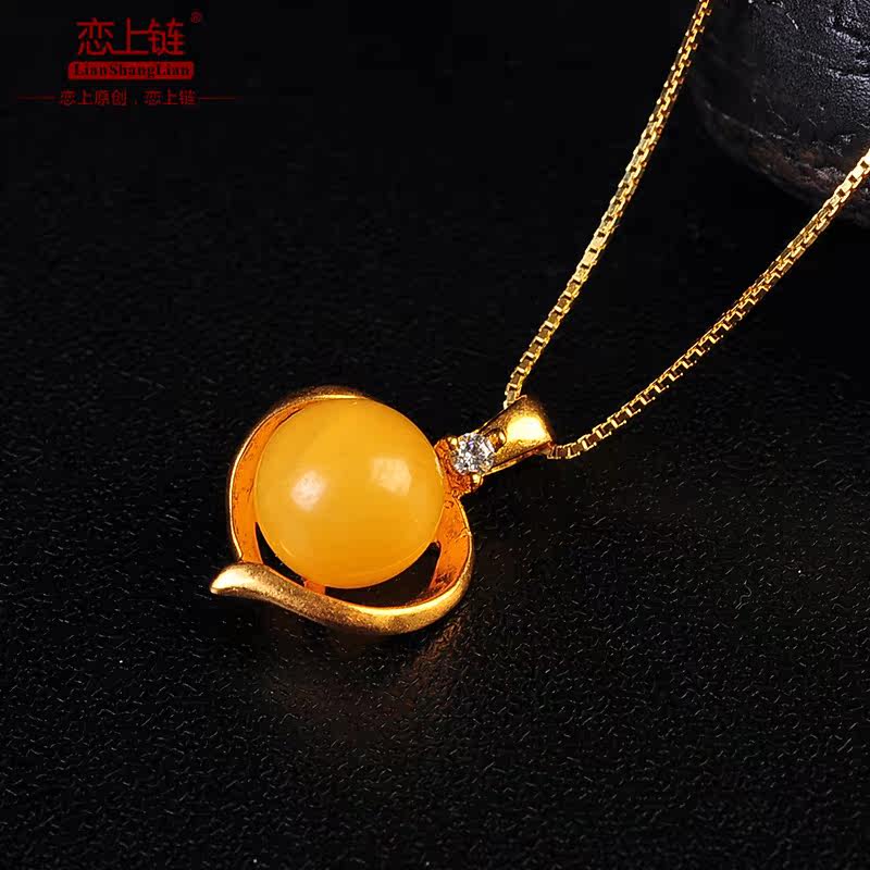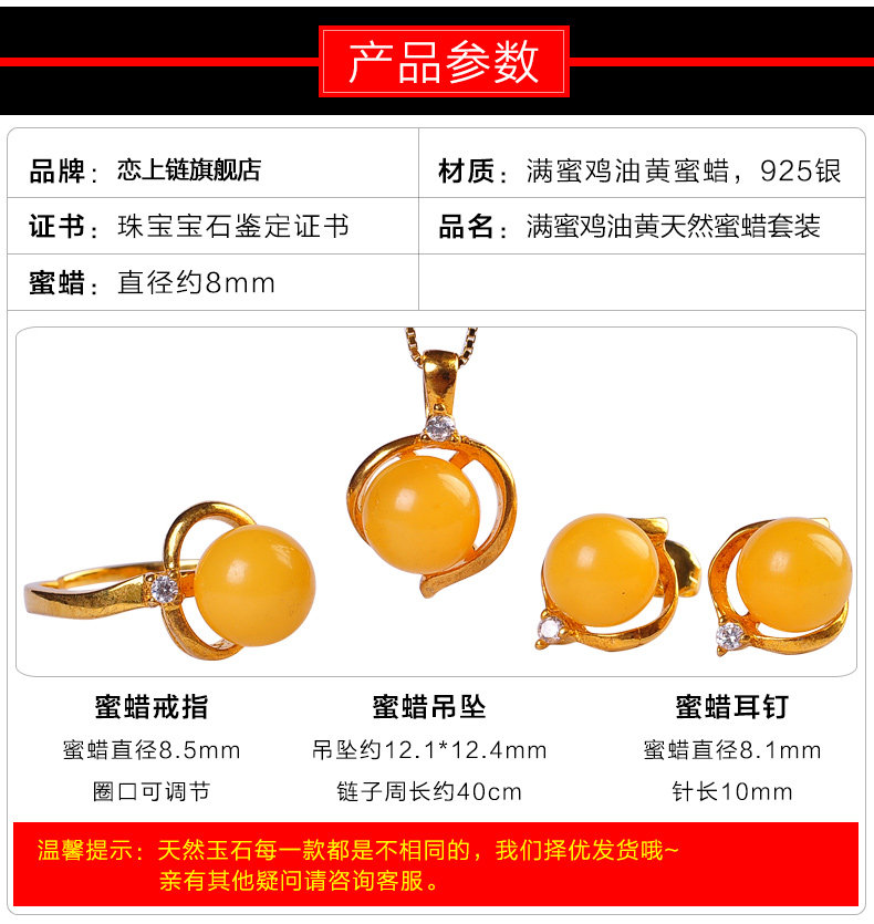 恋上链 Натуральная подвеска из воскового агата, серьги, кольцо, комплект, серебро 925 пробы