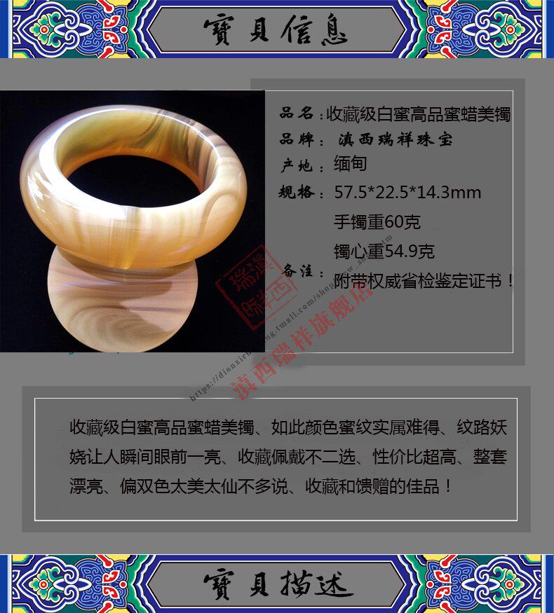 滇西瑞祥 Натуральная янтарная реплика из Мьянмы, женский браслет из воскового агата, 57.5mm