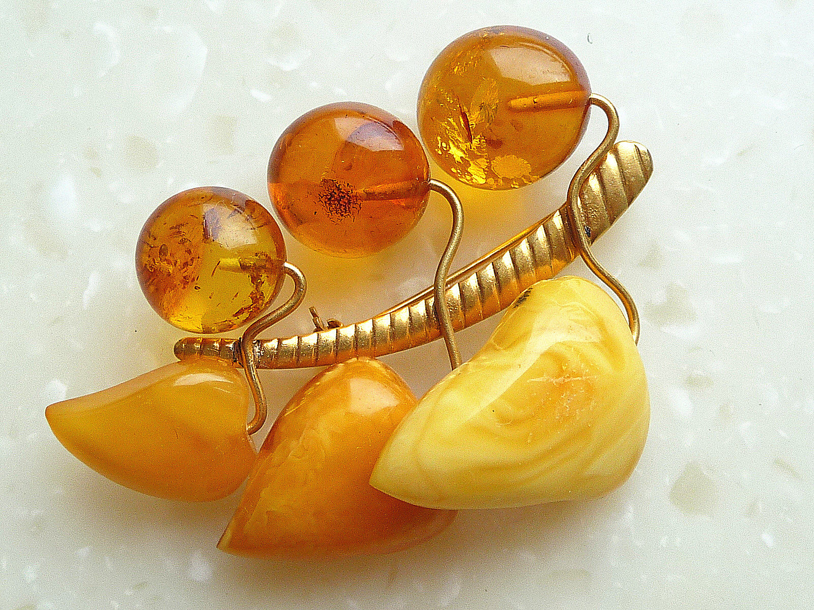 Натуральная антикварная брошь из воскового агата, Россия