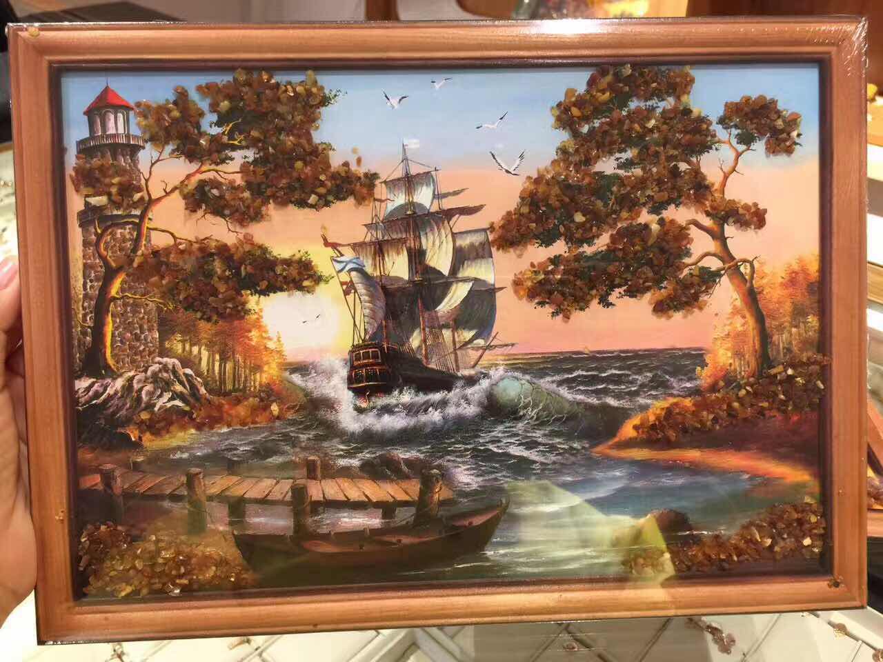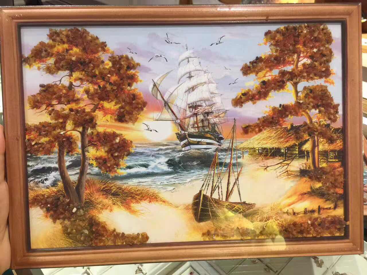 Сладкая мама янтарная живопись 33*23 см.