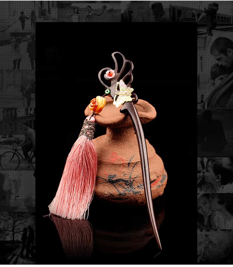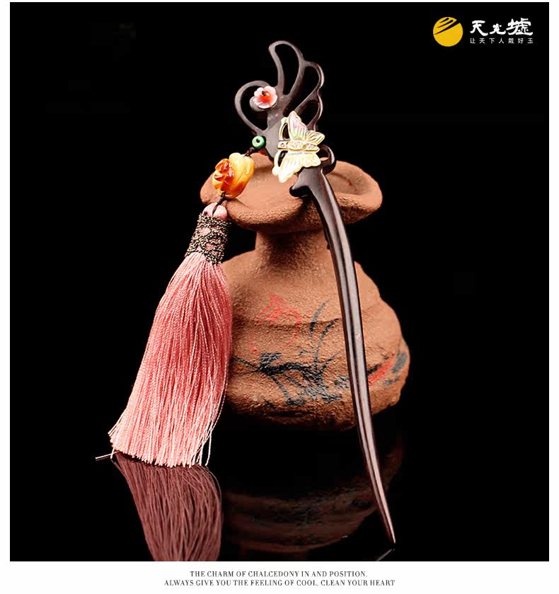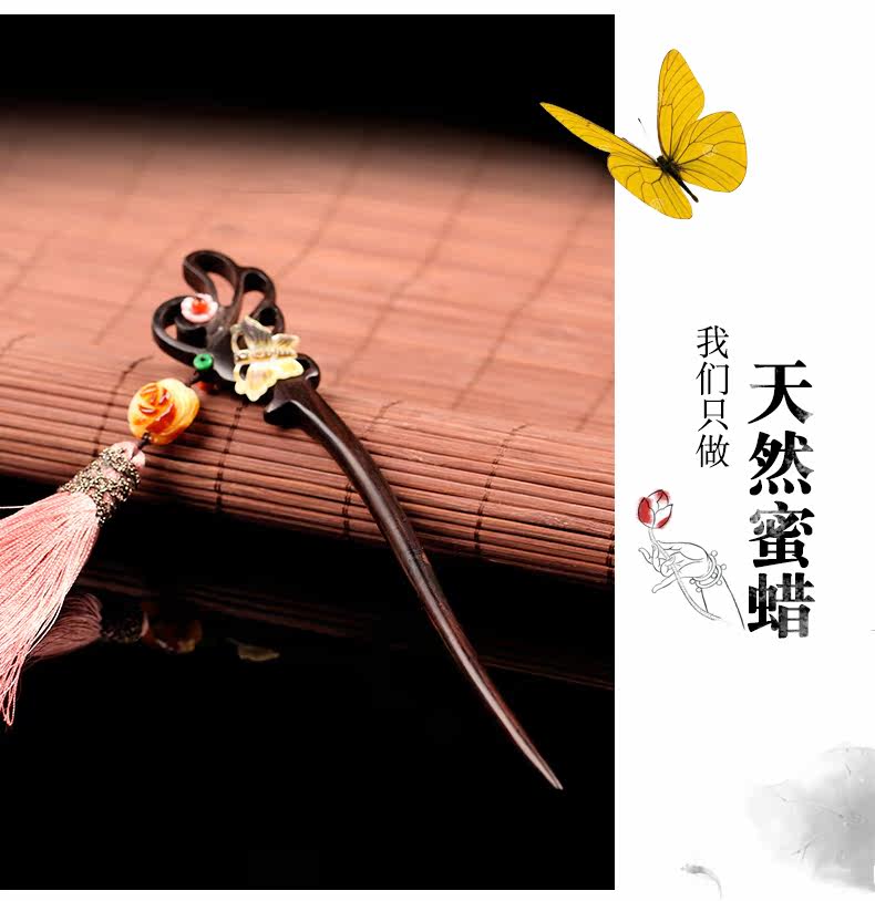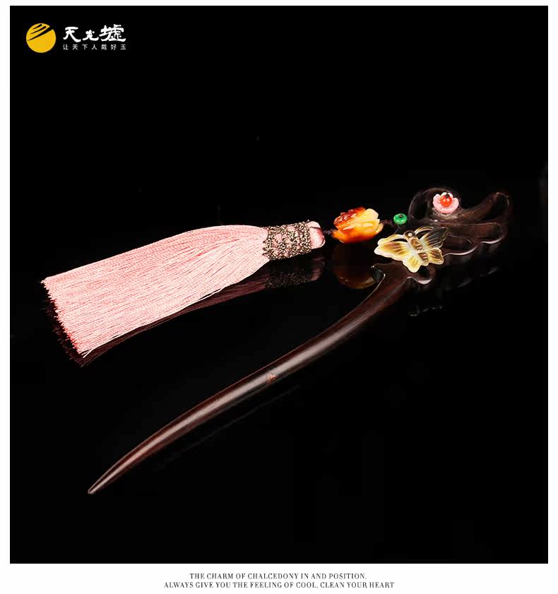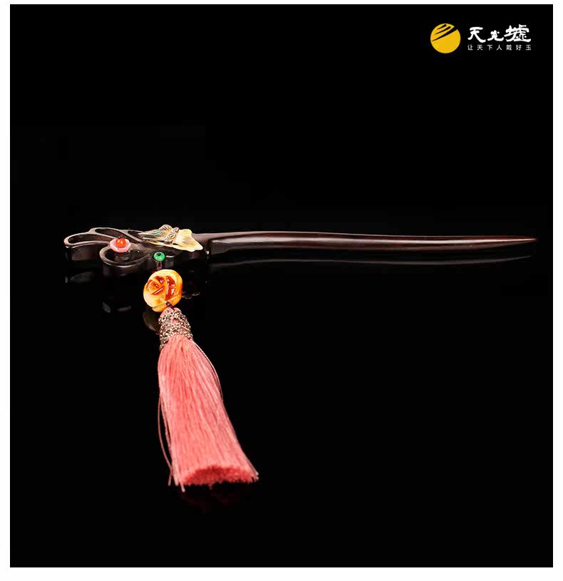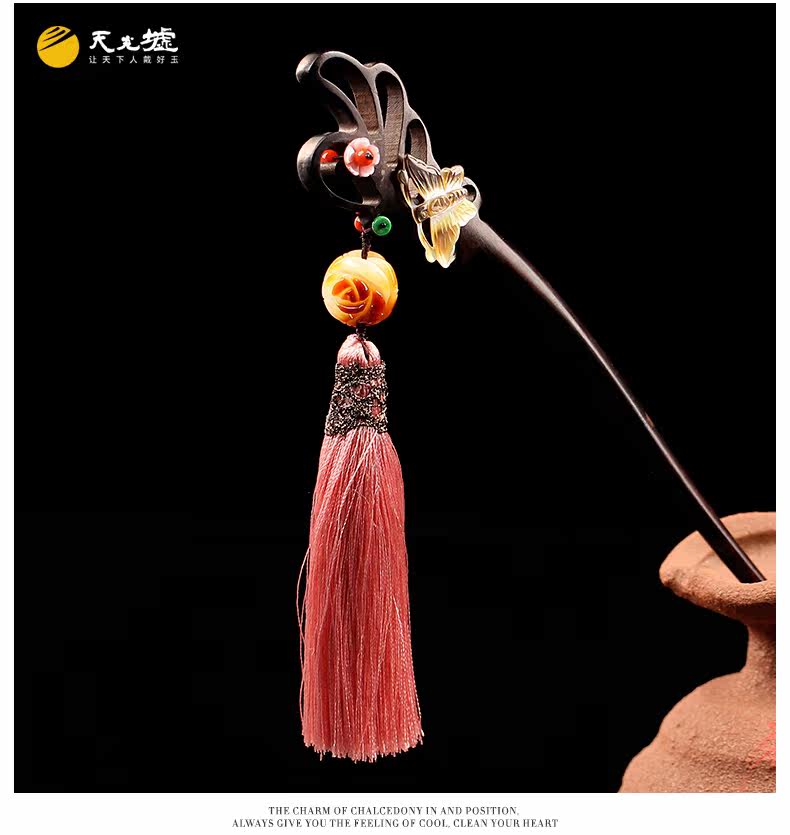 天光墟 Янтарная классическая китайская шпилька из воскового агата, ретро аксессуар для волос, заколка для волос из черного дерева Эбен из сандалового дерева, шпильки для волос с кисточками