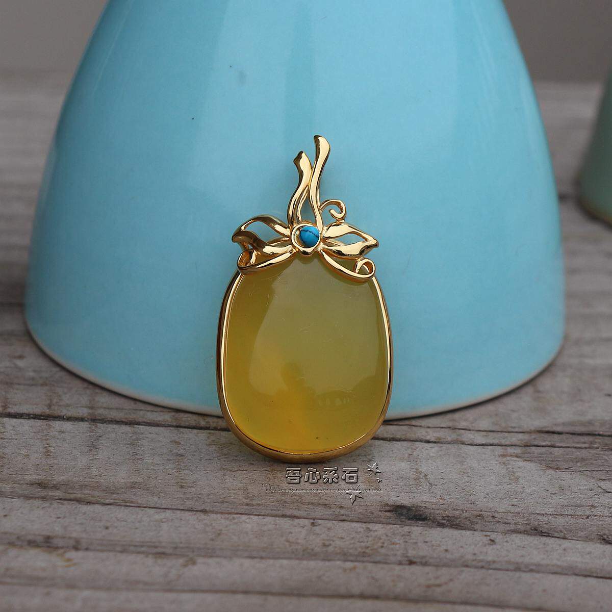 Дизайнерская натуральная инкрустация камня из воскового агата, бирюзовая подвеска, серебро 925 пробы