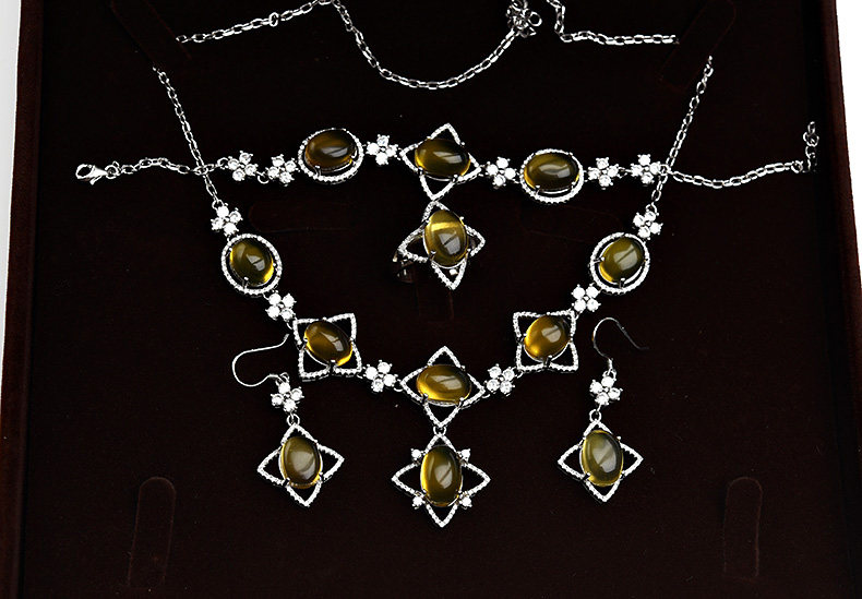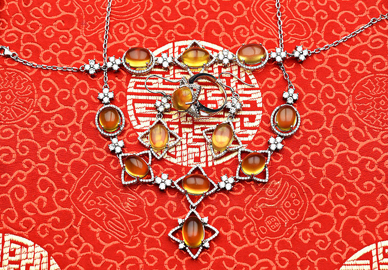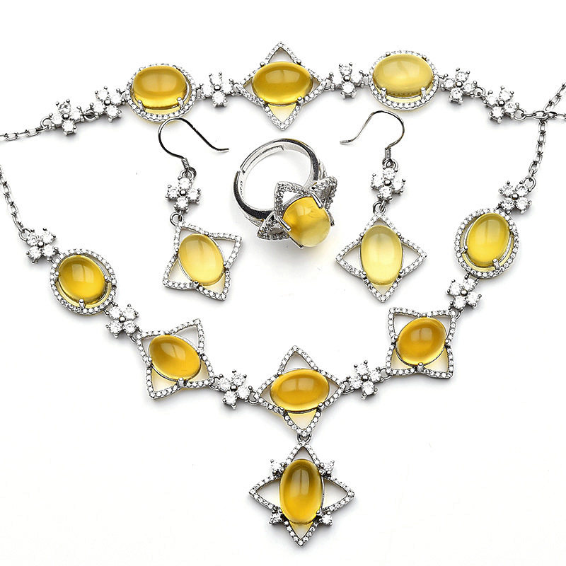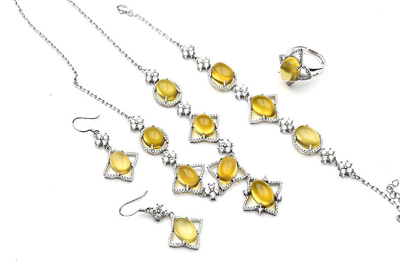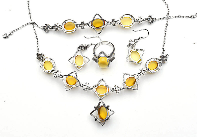 Янтарное кольцо, серьги, ожерелье и браслет, комплект