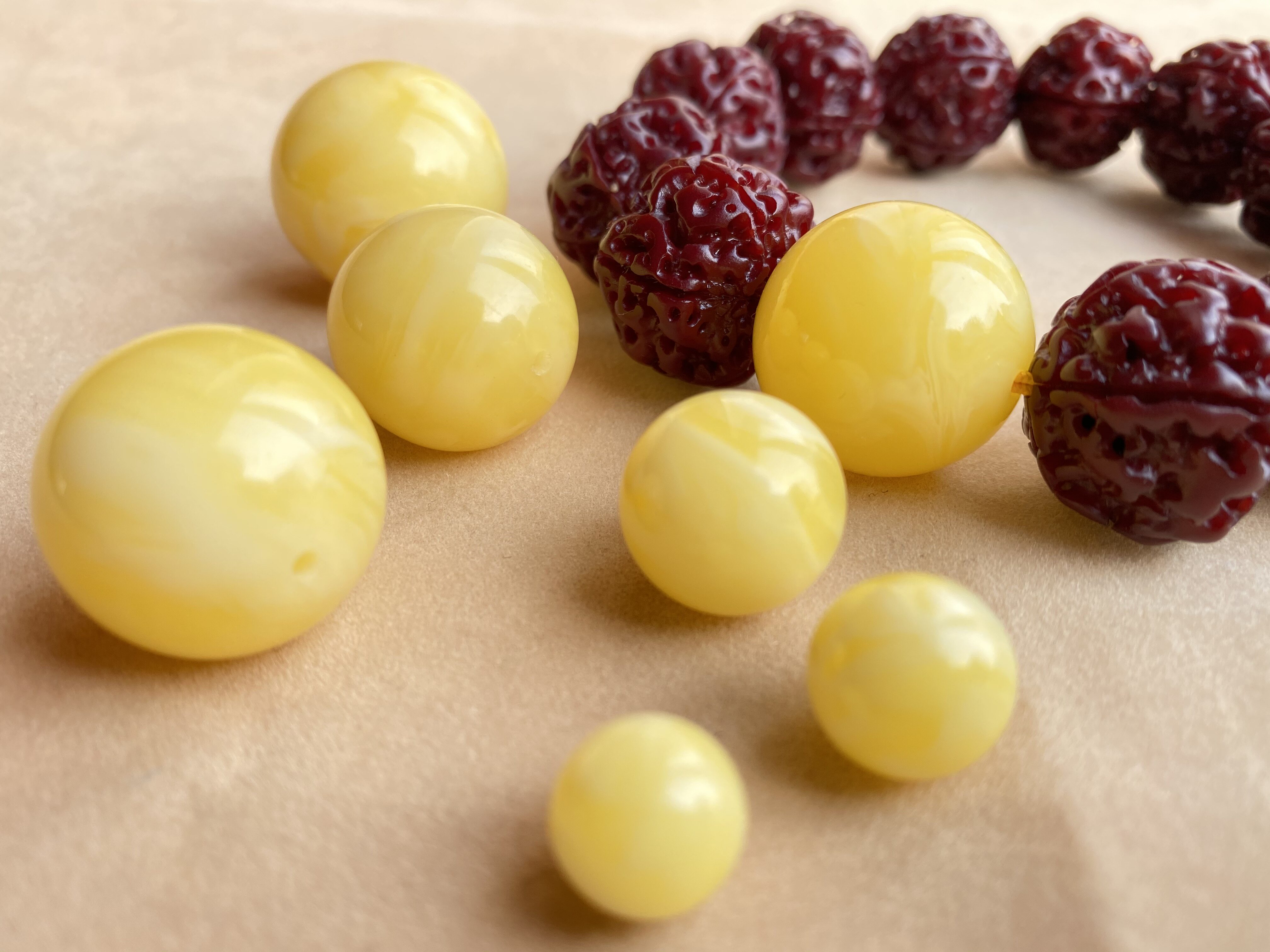 Украшение-шарик из воскового агата, янтарные бусины, четки бодхи из грецкого ореха, аксессуар
