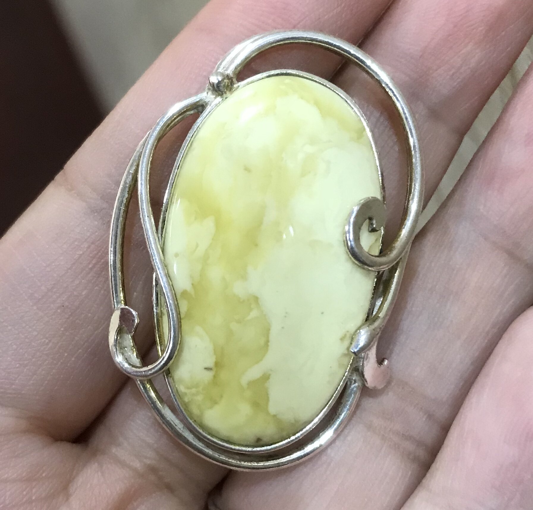 Импортная натуральная природная руда из воскового агата, лента, брошь, подвеска, Россия, серебро 925 пробы