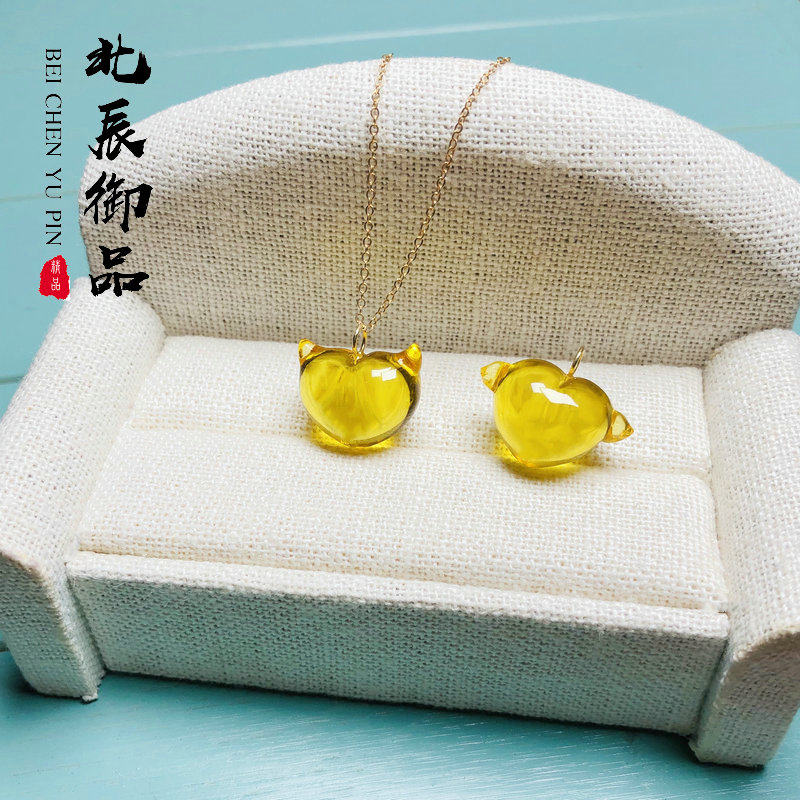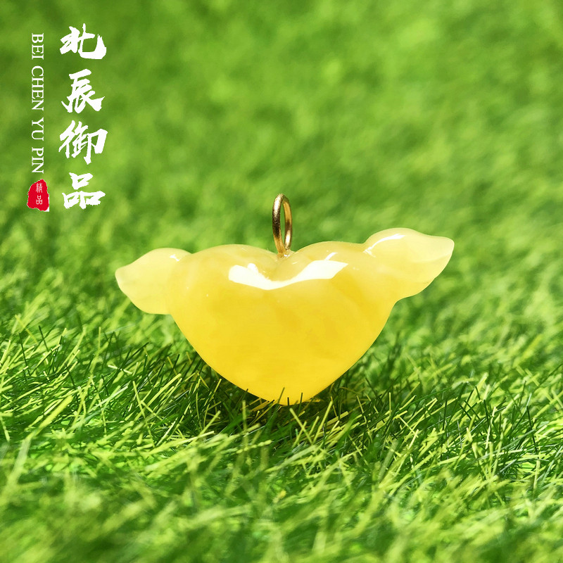 Ювелирное украшение, янтарная подвеска, резьба по камню ручной работы, резная ручка, золото 750 пробы