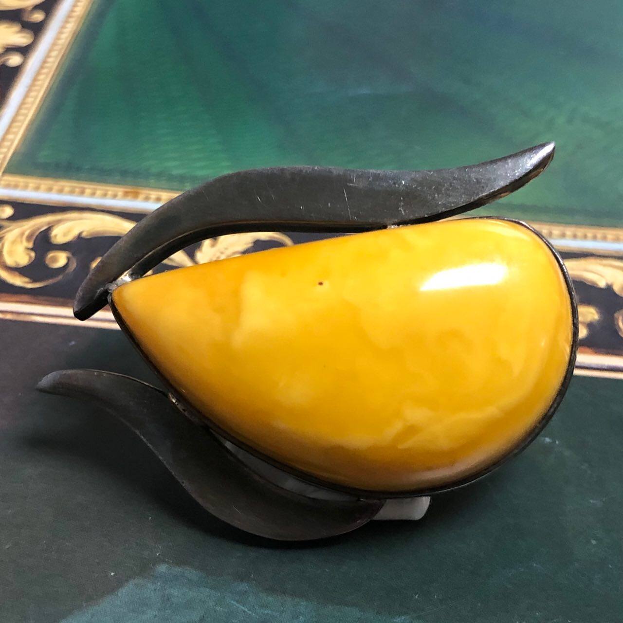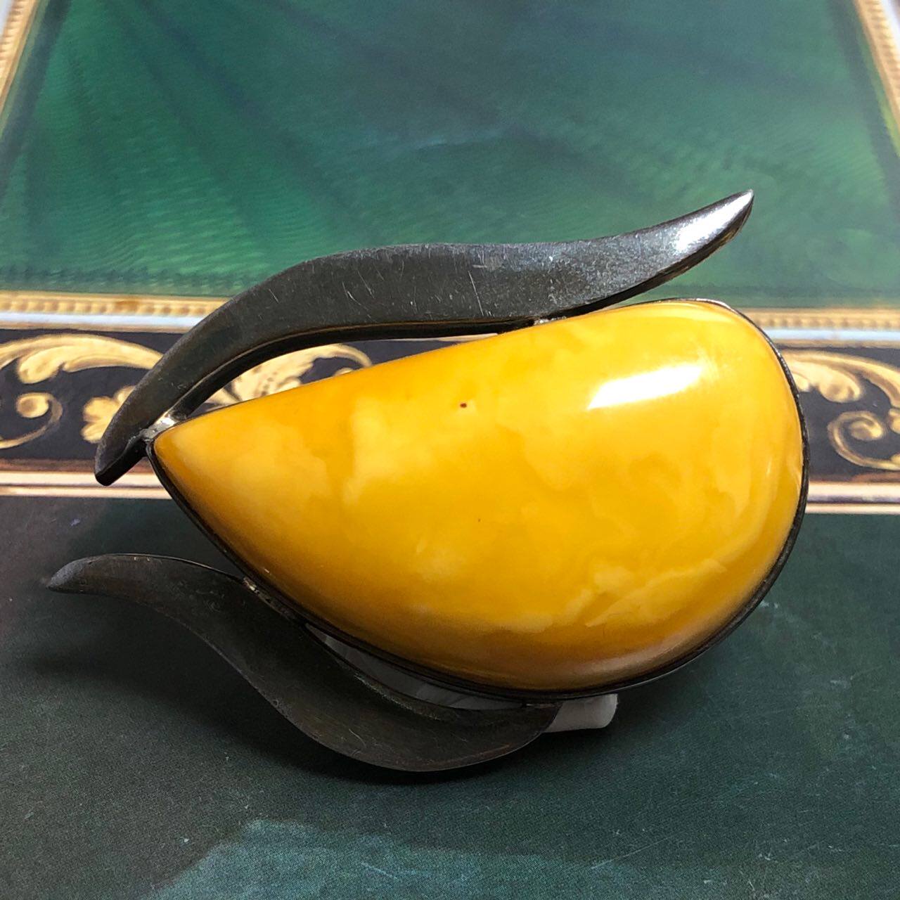 Янтарная оригинальная антикварная брошь из воскового агата в форме капли, Германия