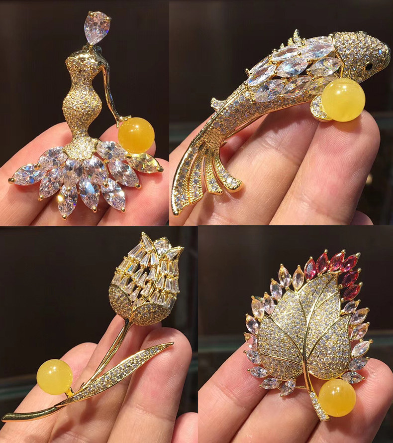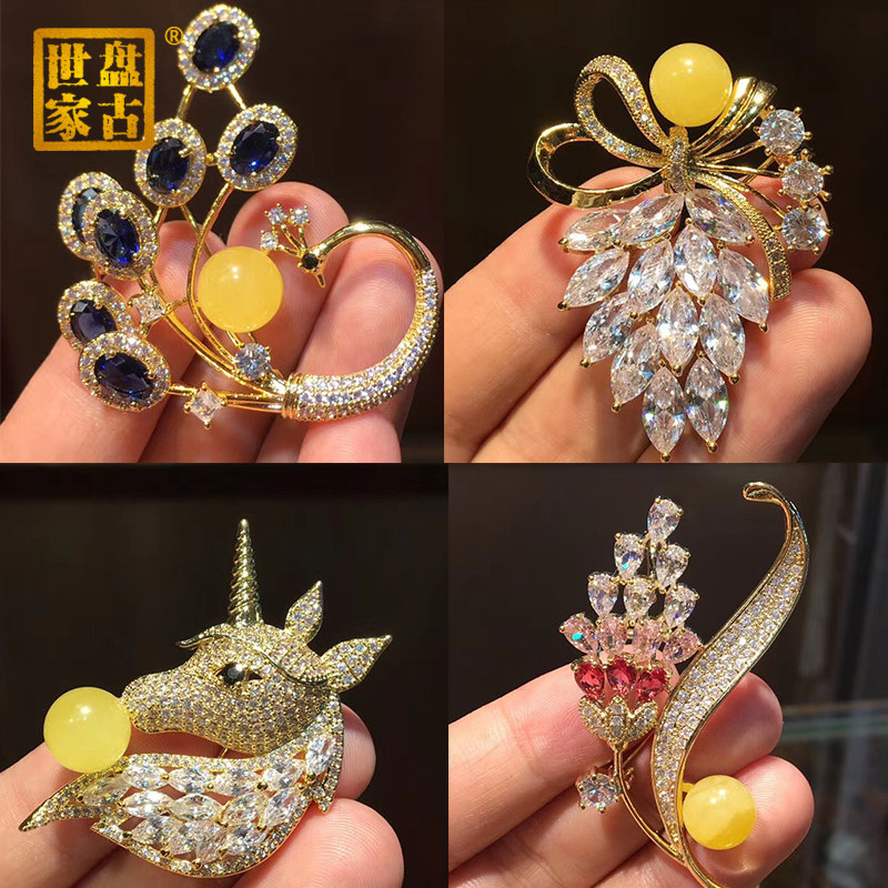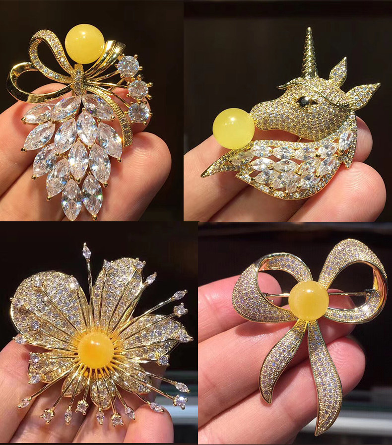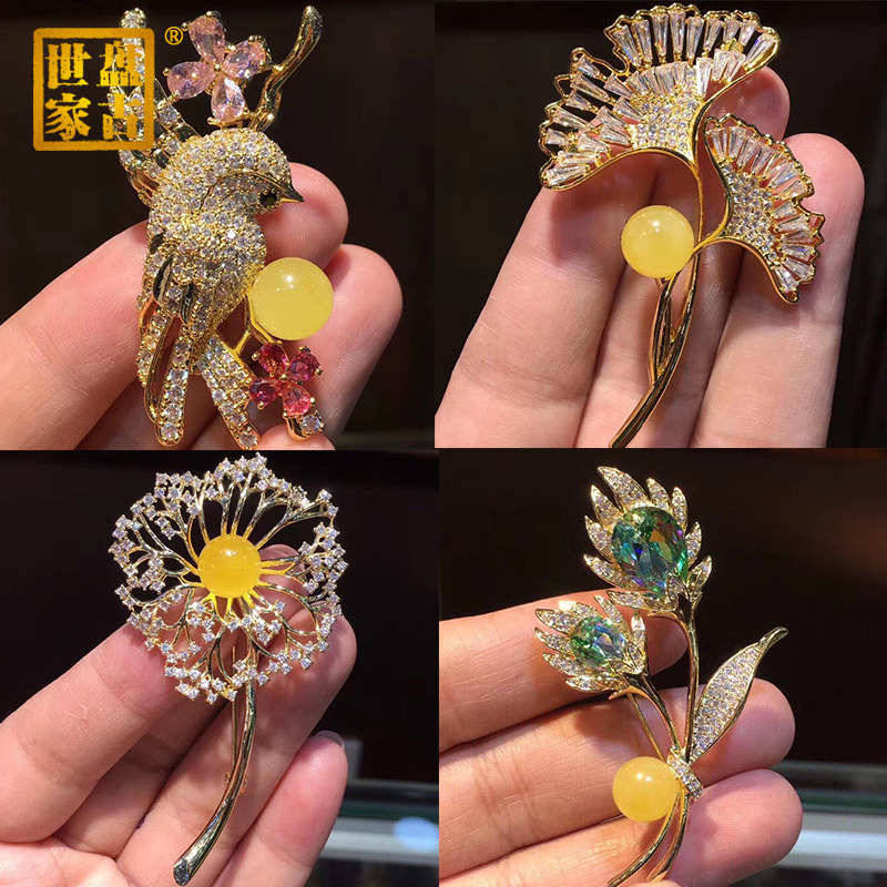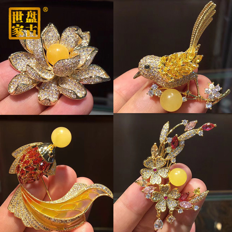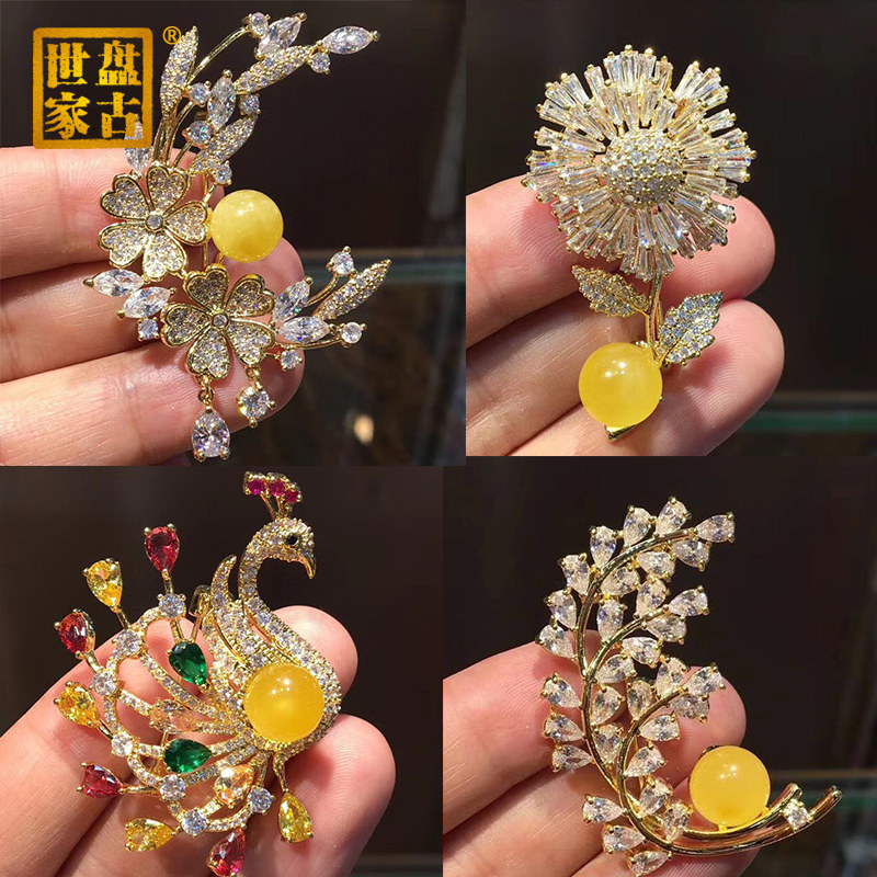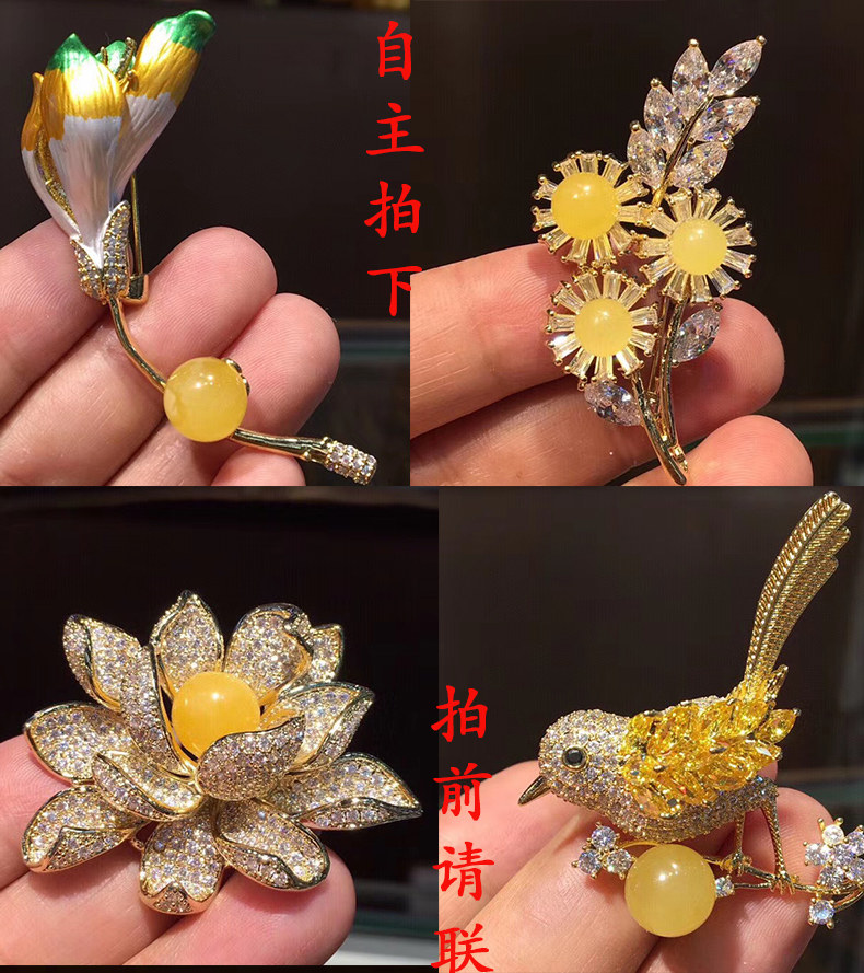 Янтарная брошь из воскового агата, подвеска, модная инкрустация камня на лацкан