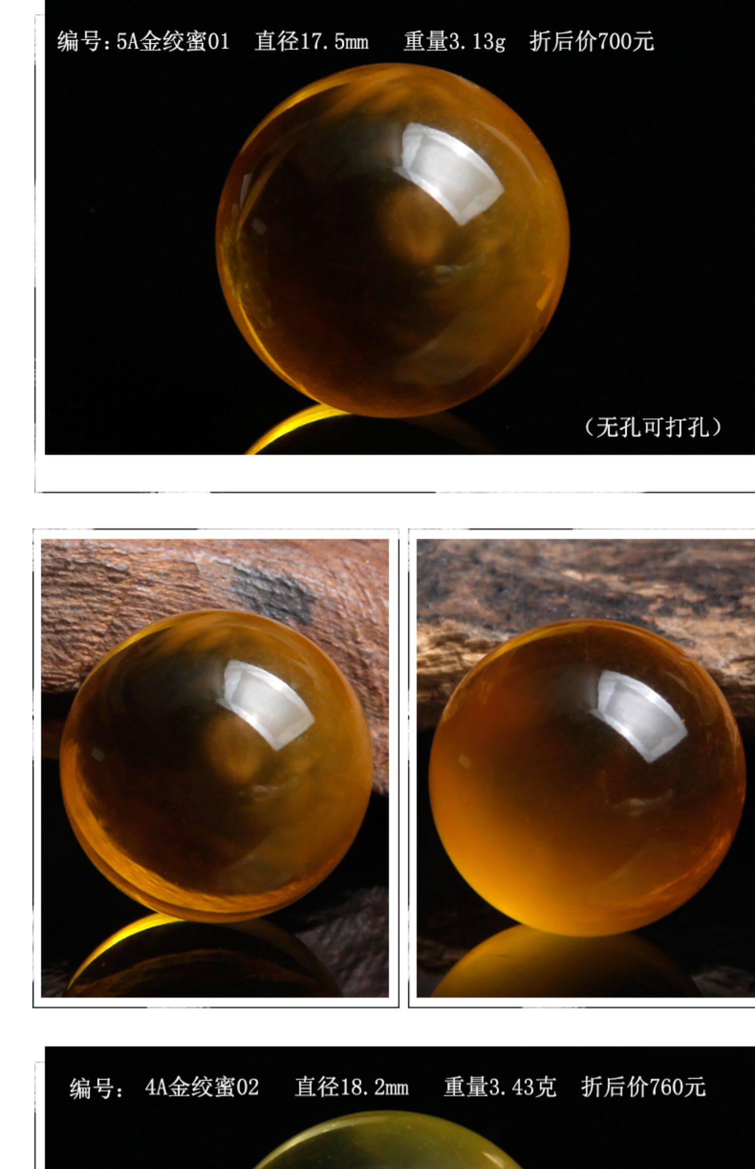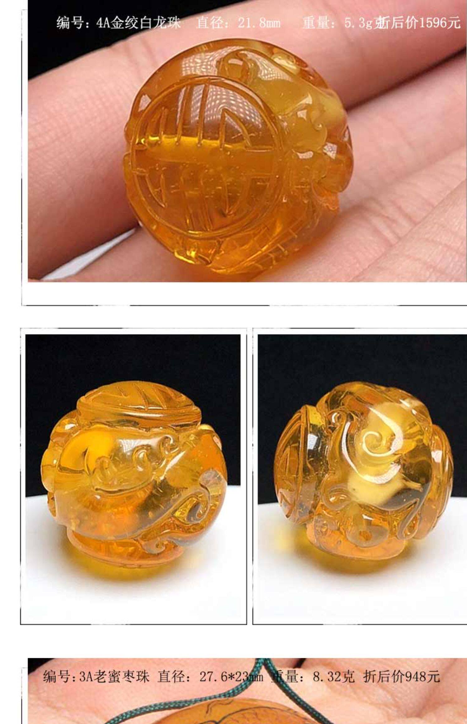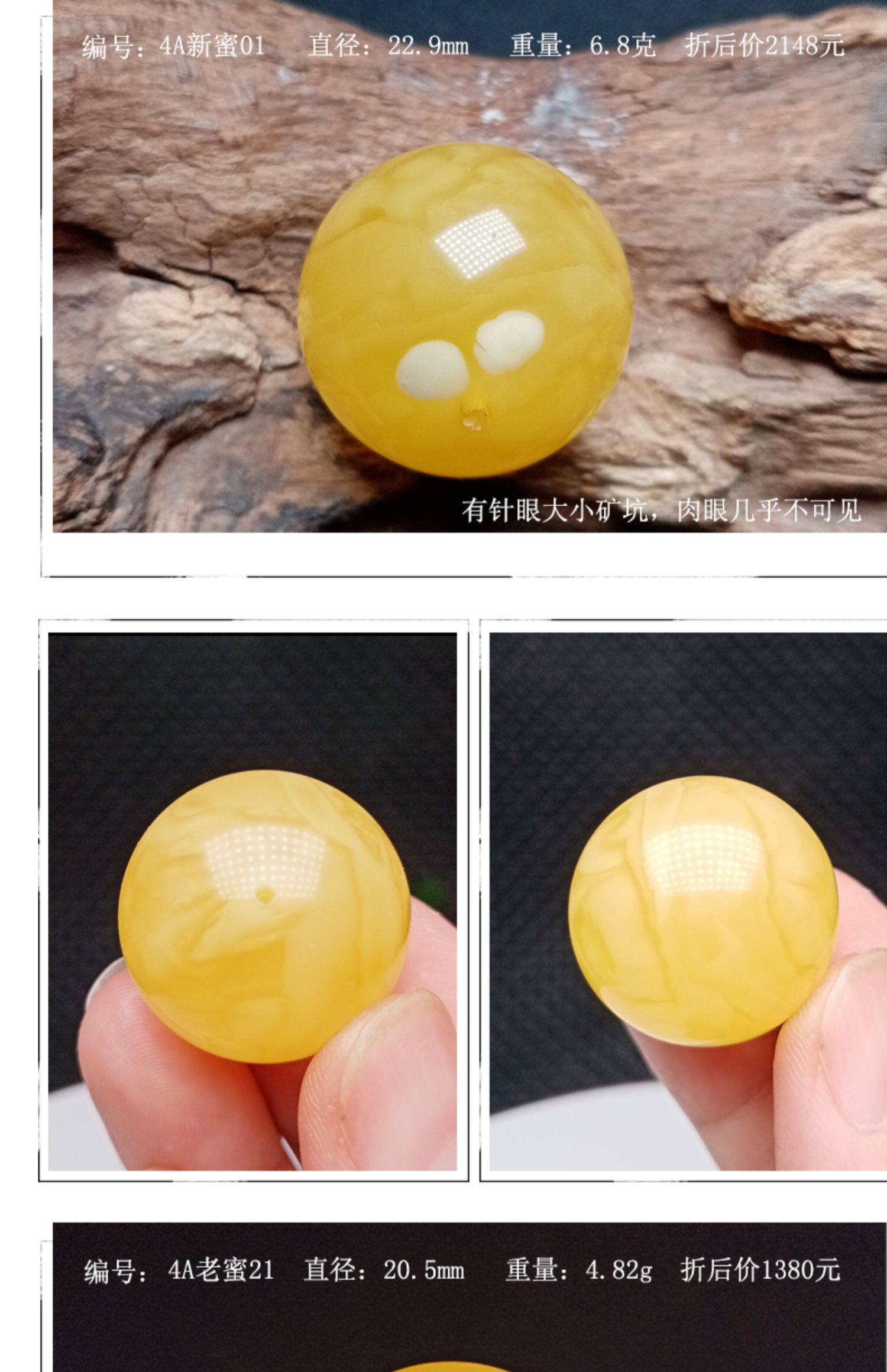 - 【4А золотой янтарь】22мм6,08г