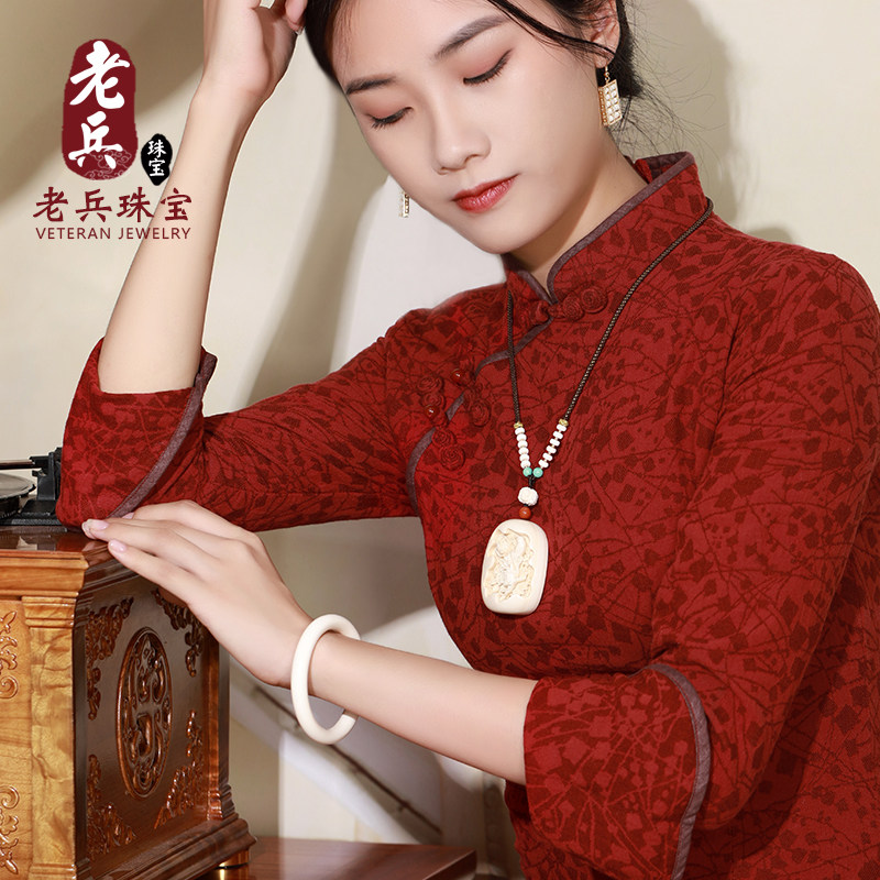 Ювелирное украшение, резной браслет, ручка, бусины, подвеска