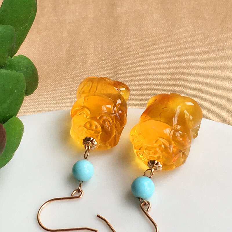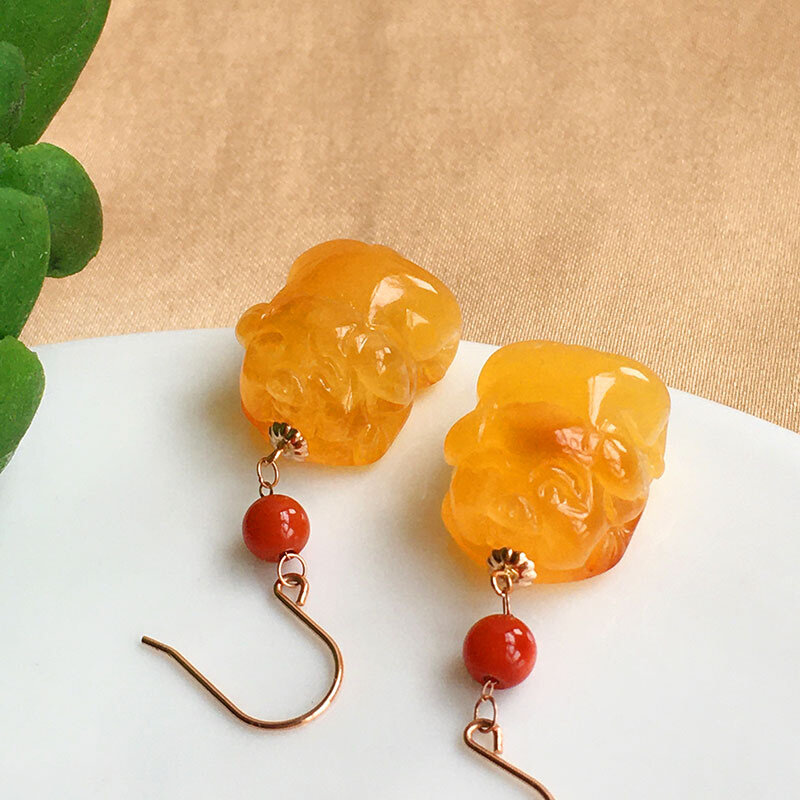 Природная руда из воскового агата, инкрустация камня, красные серьги, бирюзовое ювелирное украшение, золото 750 пробы, DIY