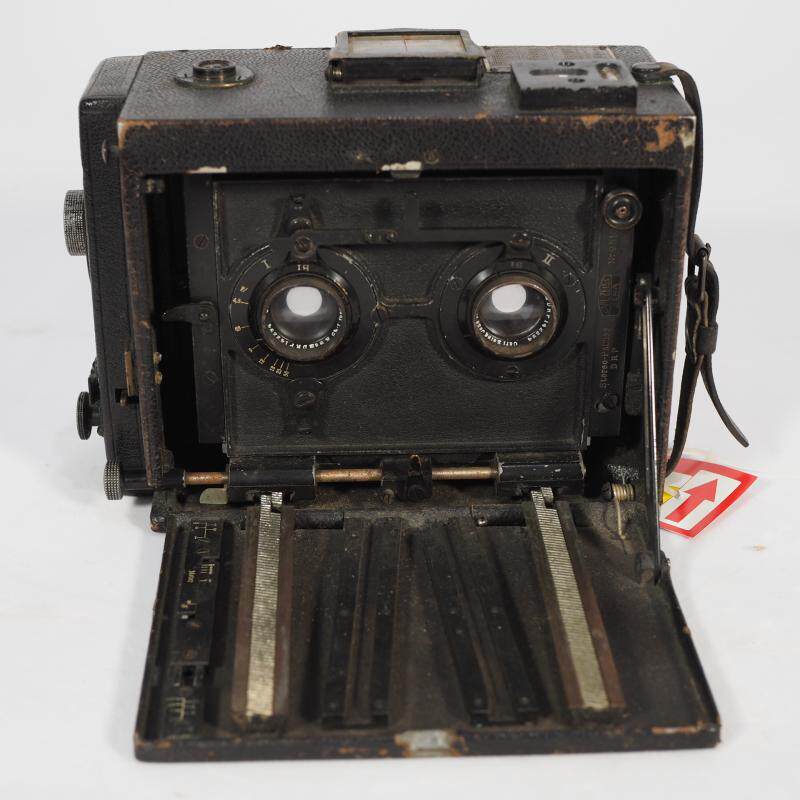 Антикварная старомодная трехмерная камера, объектив, Германия, 3D
