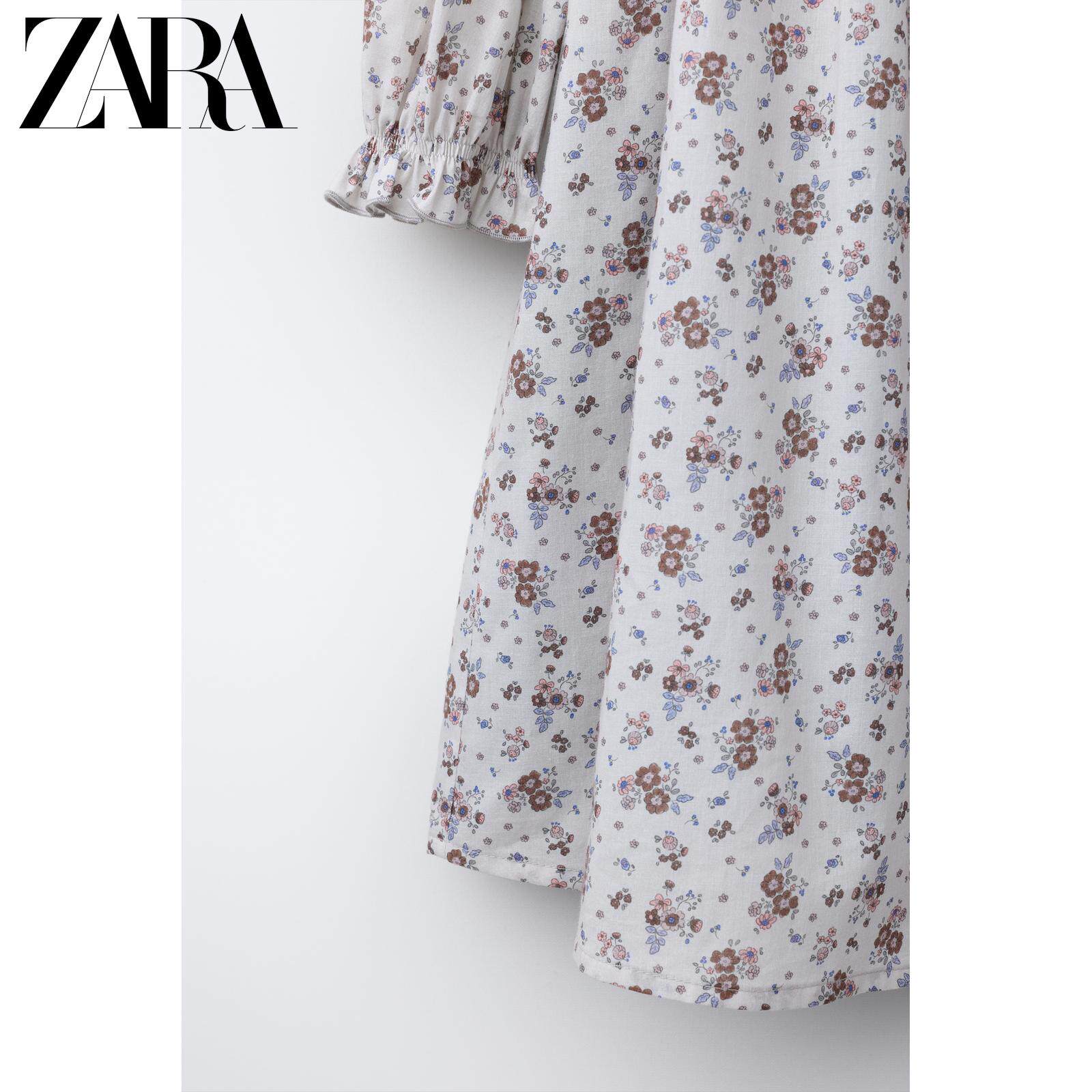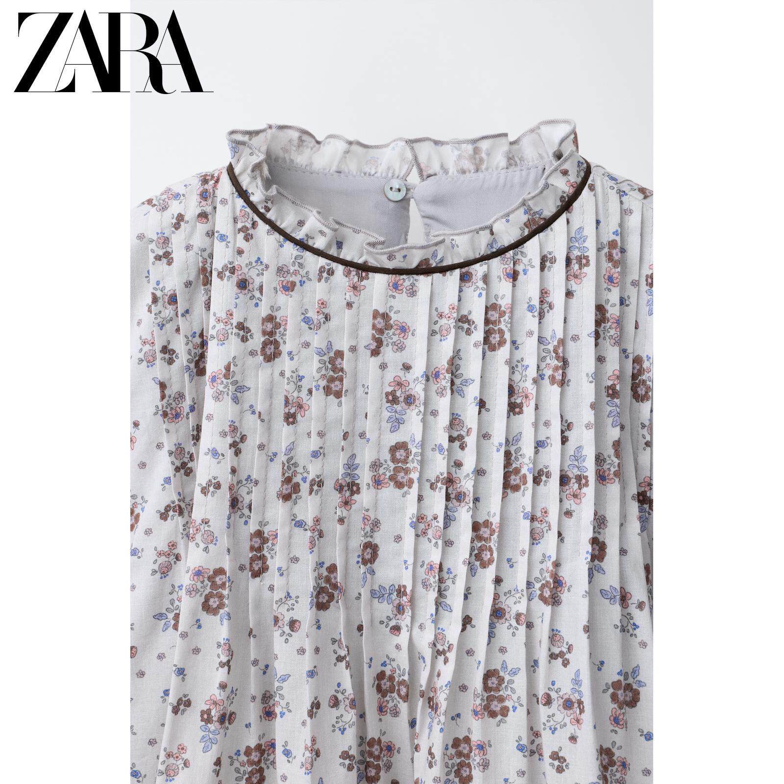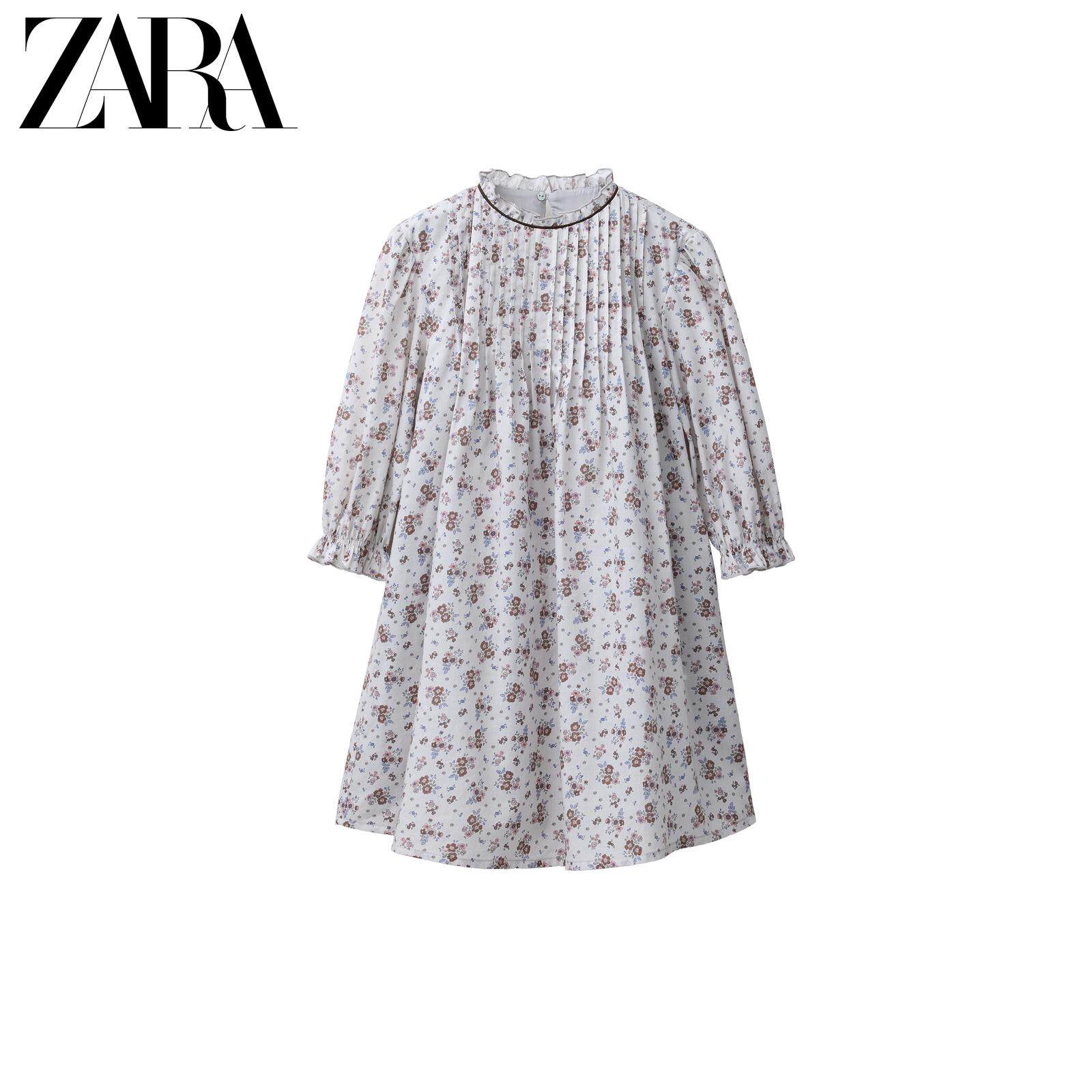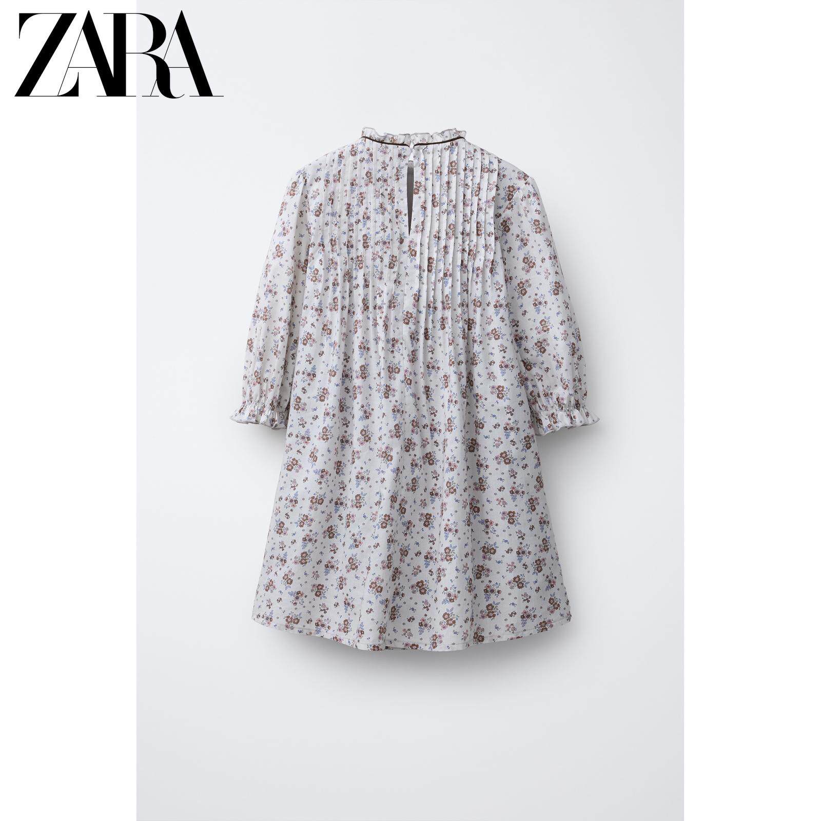 ZARA Новое поступление весны и лета 2026, детская одежда для девочек, платье с цветочным принтом и оборкой, высоким воротником и длинными рукавами, 1269626 837