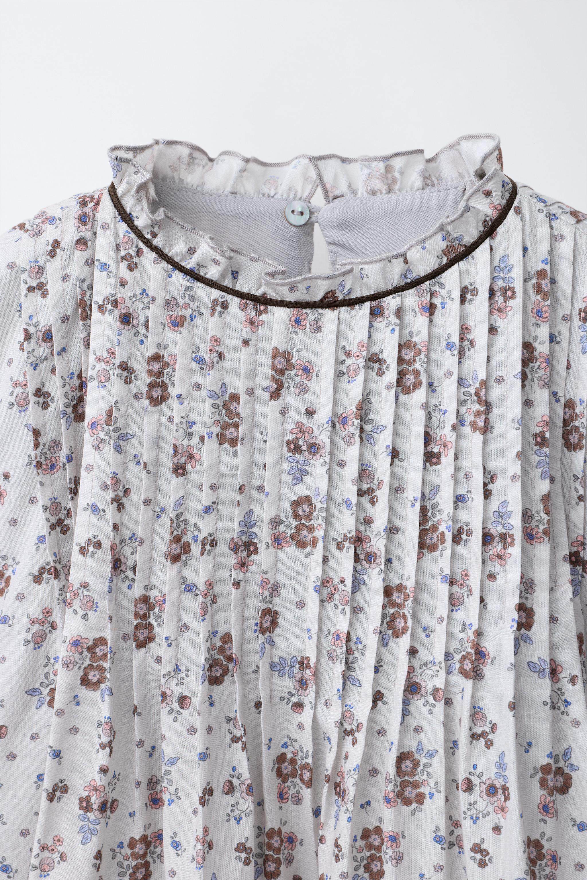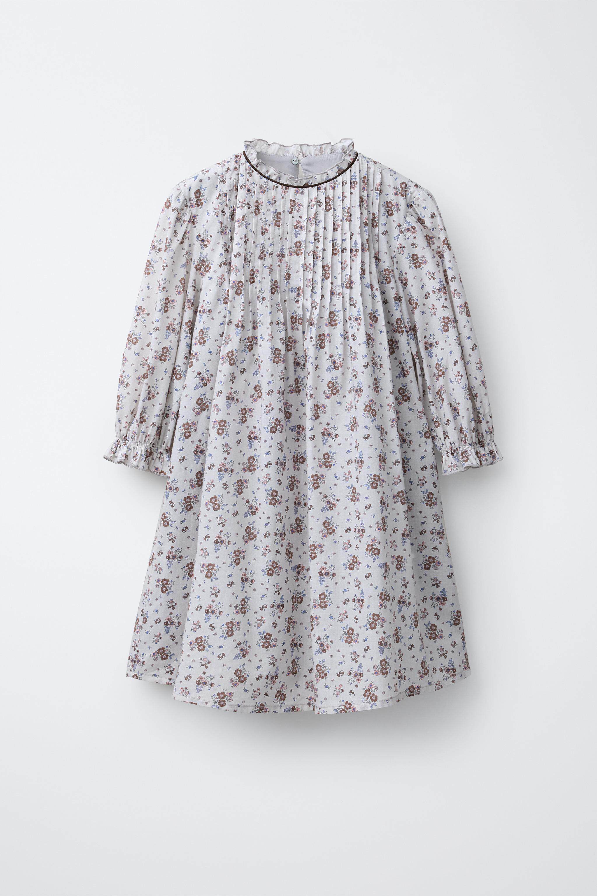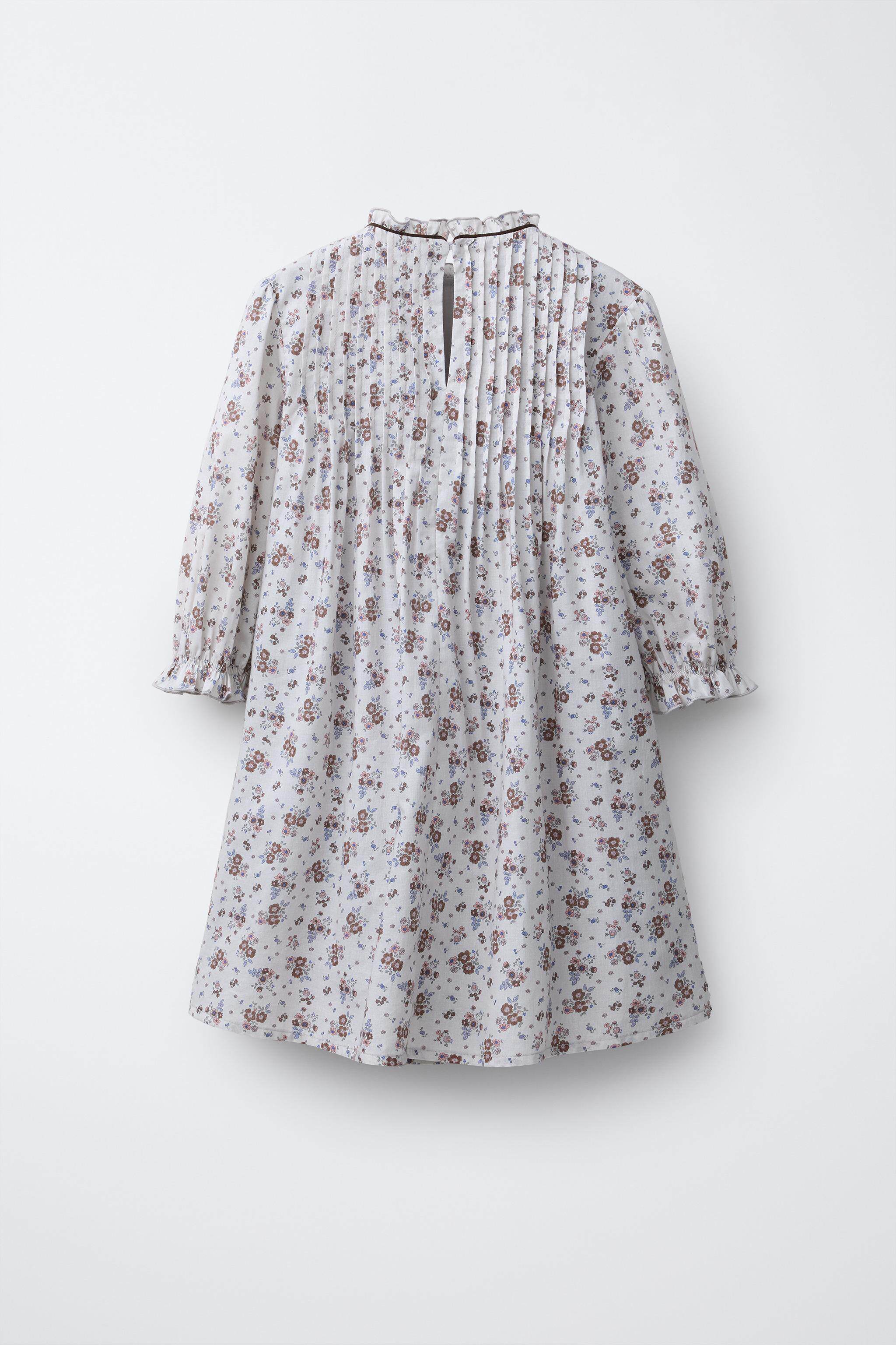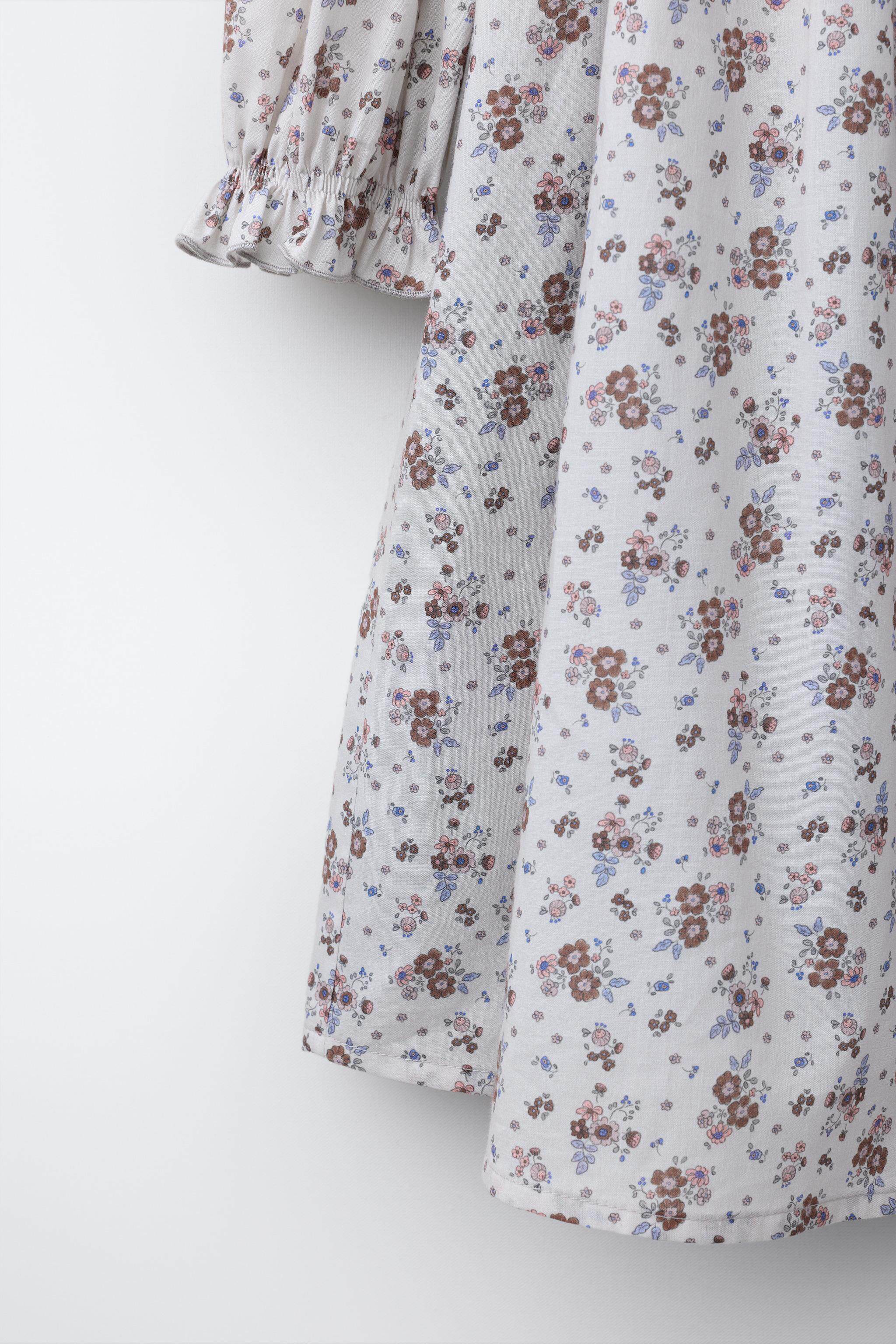 ZARA Новое поступление весны и лета 2026, детская одежда для девочек, платье с цветочным принтом и оборкой, высоким воротником и длинными рукавами, 1269626 837